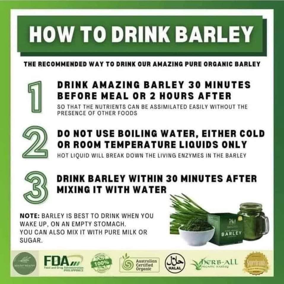 IAM AMAZING PURE ORGANIC BARLEY POWDERED DRINK MIX -1 BOX. IAM AMAZING PURE ORGANIC BARLEY POWDERED DRINK MIX FROM AUSTRALIA. YOUR DAILY HEALTHIER ALTERNATIVE DRINK. IT IS RICH IN 68 MICRONUTRIENTS. 4 STAGES OF NATURAL HEALING 1st Stage -CLEANSING In this stage the body is being cleansed specially the digestive system. To prepare the body for easy absorption of the vitamins and minerals. 2nd Stage-DETOXIFICATION In this stage the body is eliminating the toxins that has been built up in your body that causes different diseases/problems. Take note: If ever you feel some changes in your body on the first few days, it is normal, it is called BRR (Body Recovery Reaction) it only means that your body is already in the healing process. 3rd Stages- NUTRIENTS ASSIMILATION In this stage your body is ready to absorb the minerals, minerals and vitamins that enters your body, giving your immune system a boost. Note: The reason why we are acquiring diseases is because we lack nutrients in our body. Lack of nutrients will lead to decrease in immune system, decrease in antibodies to fight the free radicals, viruses and bacteria. 4th Stage-CELL REGENERATION In this stage the damage cell is being repaired from free radicals to bring it back to its normal system to prevent malfunction of the organs. Drink amazing Barley daily and take advantage of this 4 stage of natural healing and repair your body |