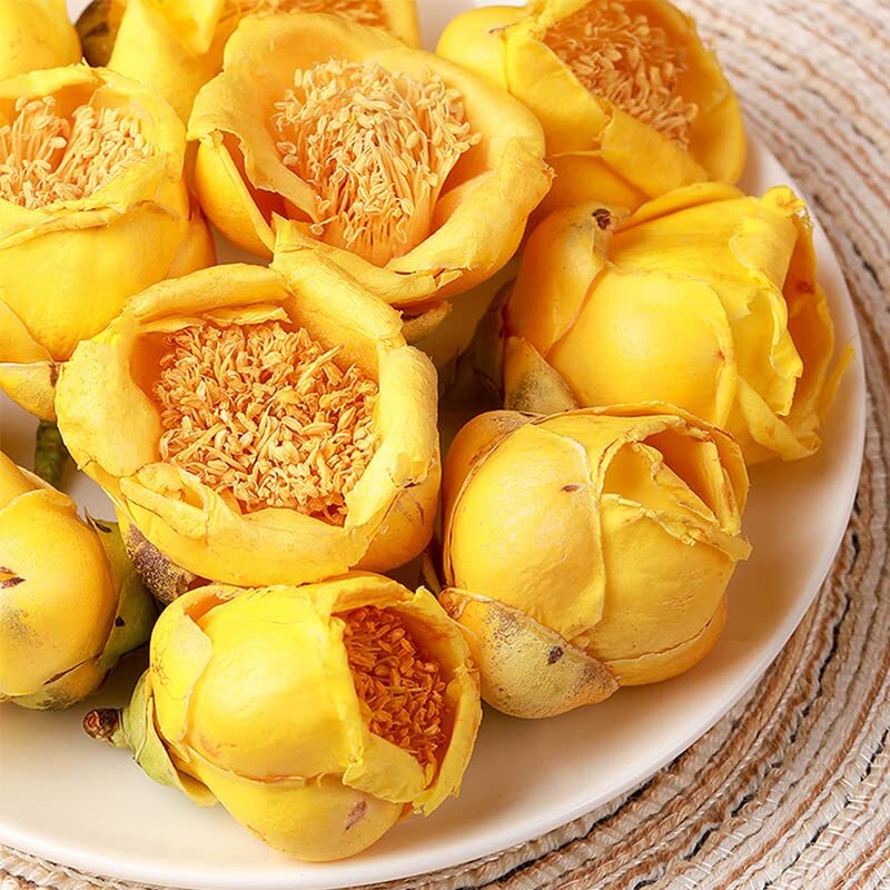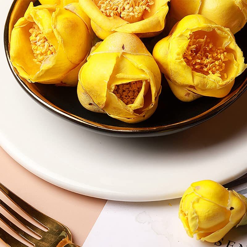 A complete flower, pleasing to the eye. Native wild tree golden flower tea, natural growth flowers. The golden camellia tea is very special. When drinking camellia, it is necessary to brew it to better release its delicious flavor. During the tea brewing process, as the tea brewing time deepens, there will be a lot of foam, which is a normal situation. Storage method: Store in a cool and dry place.