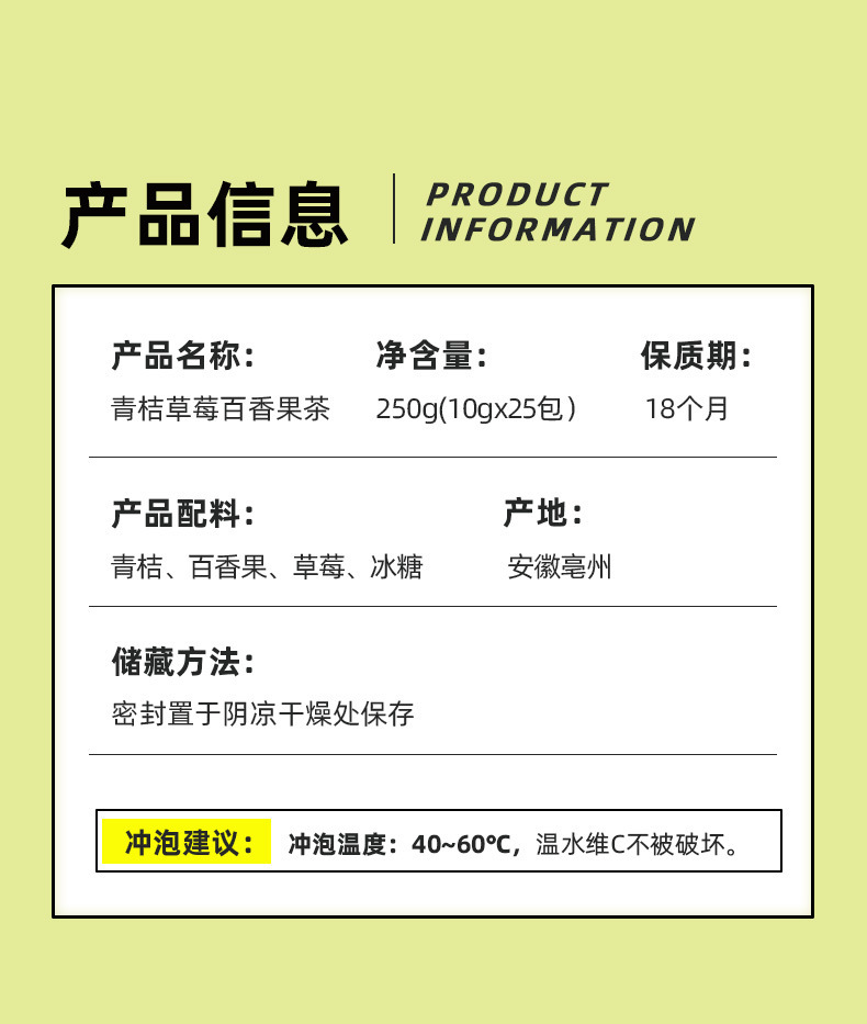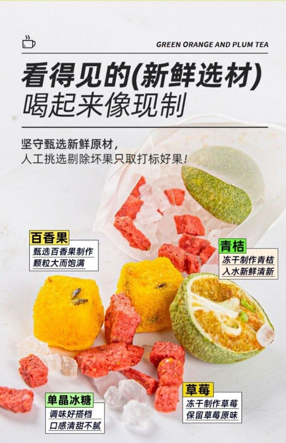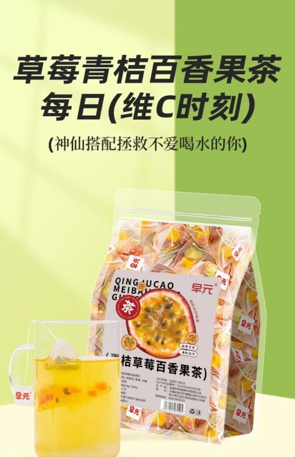 Freeze Dried Fruit Tea Bags Strawberry Green Orange Passion Fruit Blend