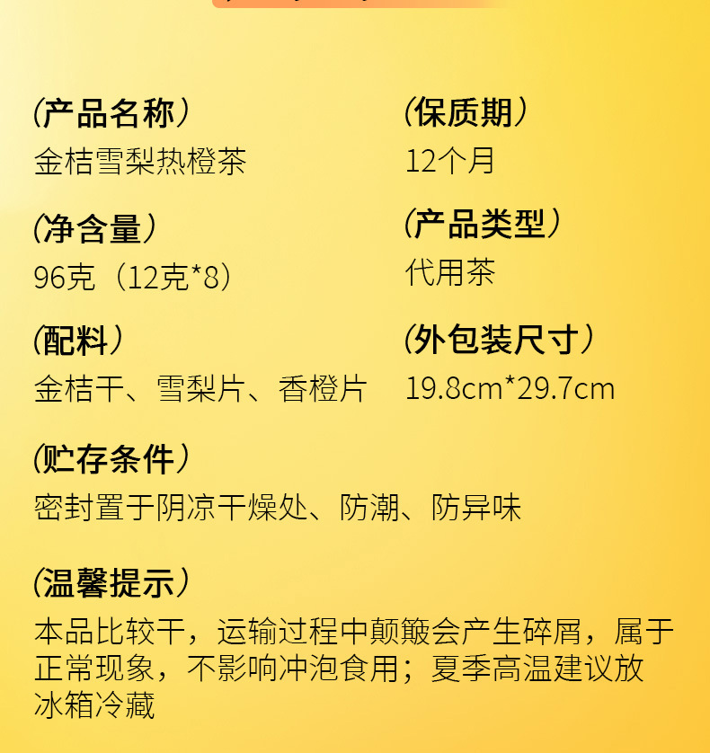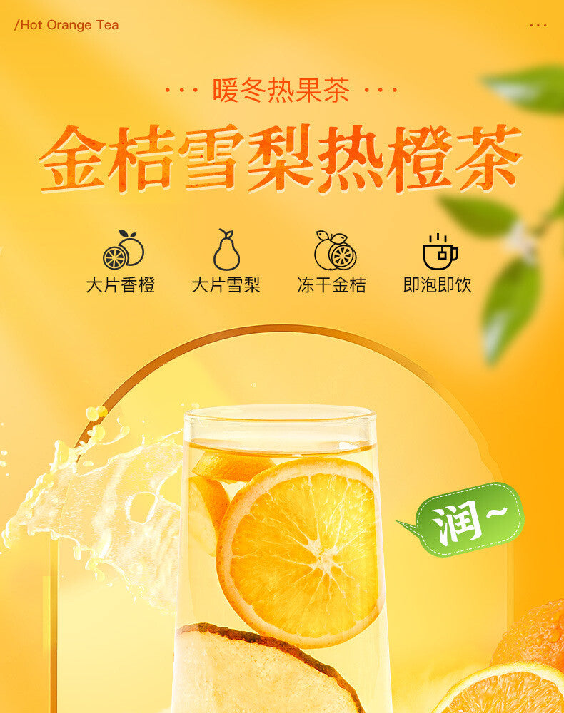Fruit Tea Blend with Freeze-Dried Fruits Kumquat Snow Pear Hot Orange Tea