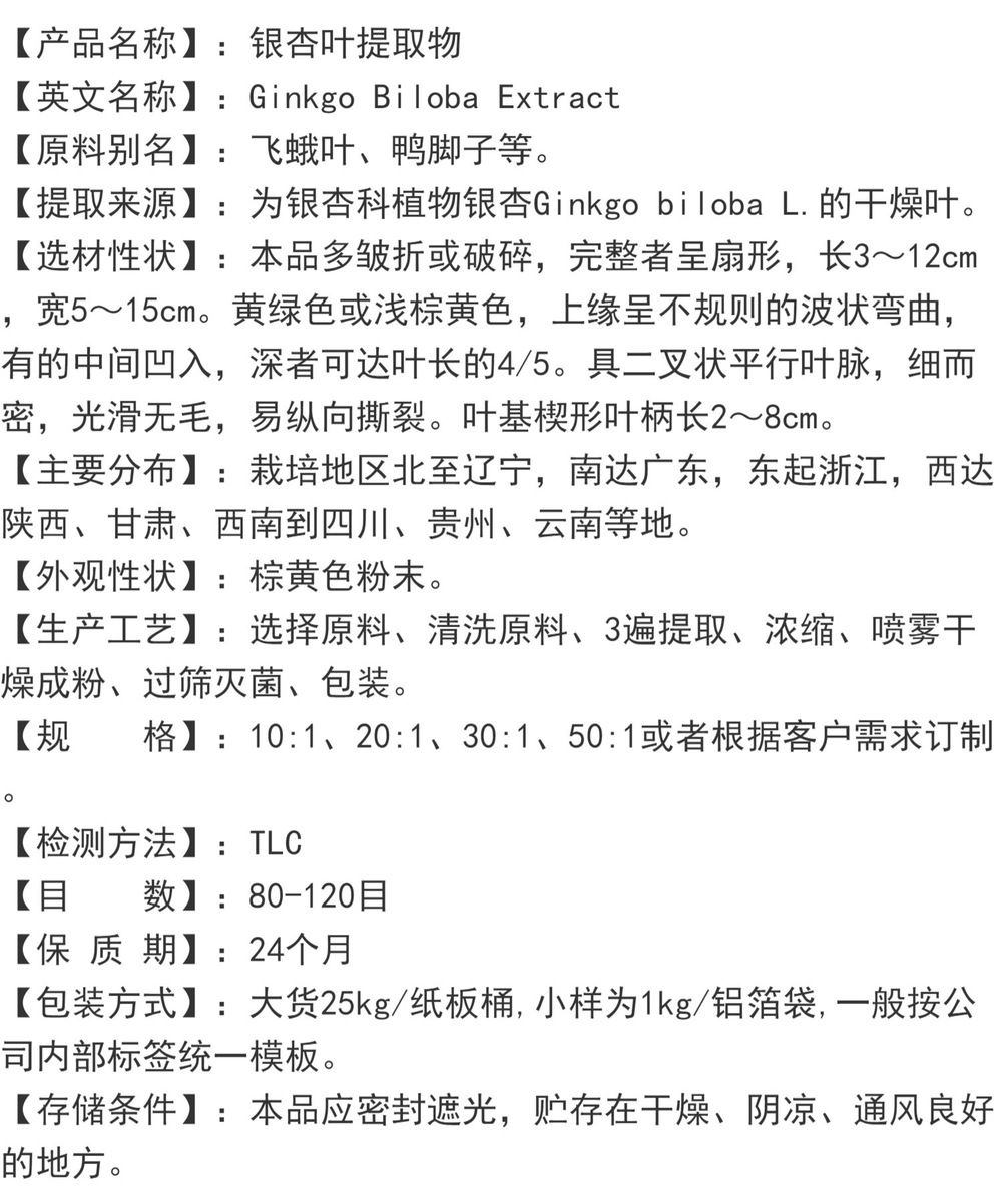 Ginkgo Biloba Extract Water Soluble Rich in Flavonoids Memory & Focus Support