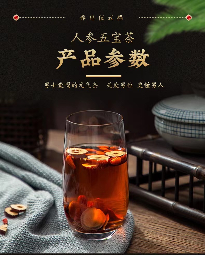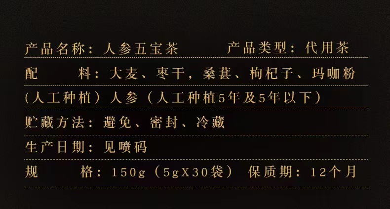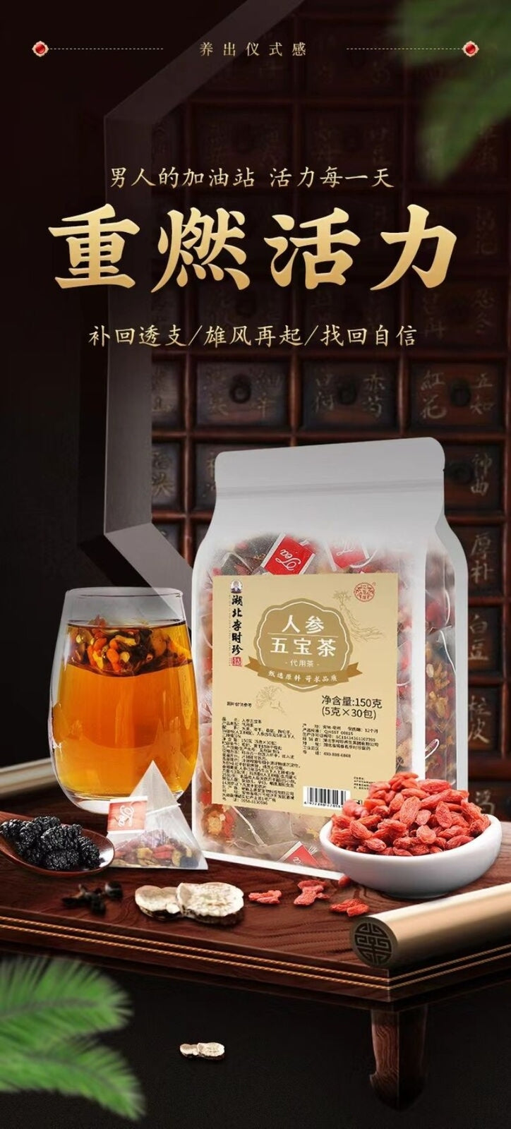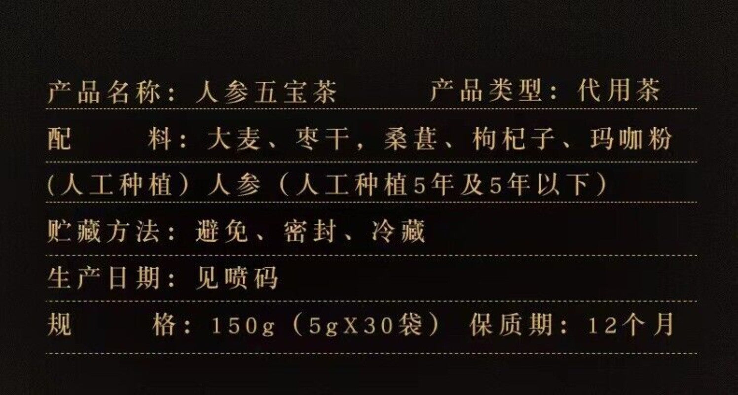 Ginseng 5-Herb Tea - Mulberry, Goji, Barley, Red Date, 150g, Wellness Tea Bags