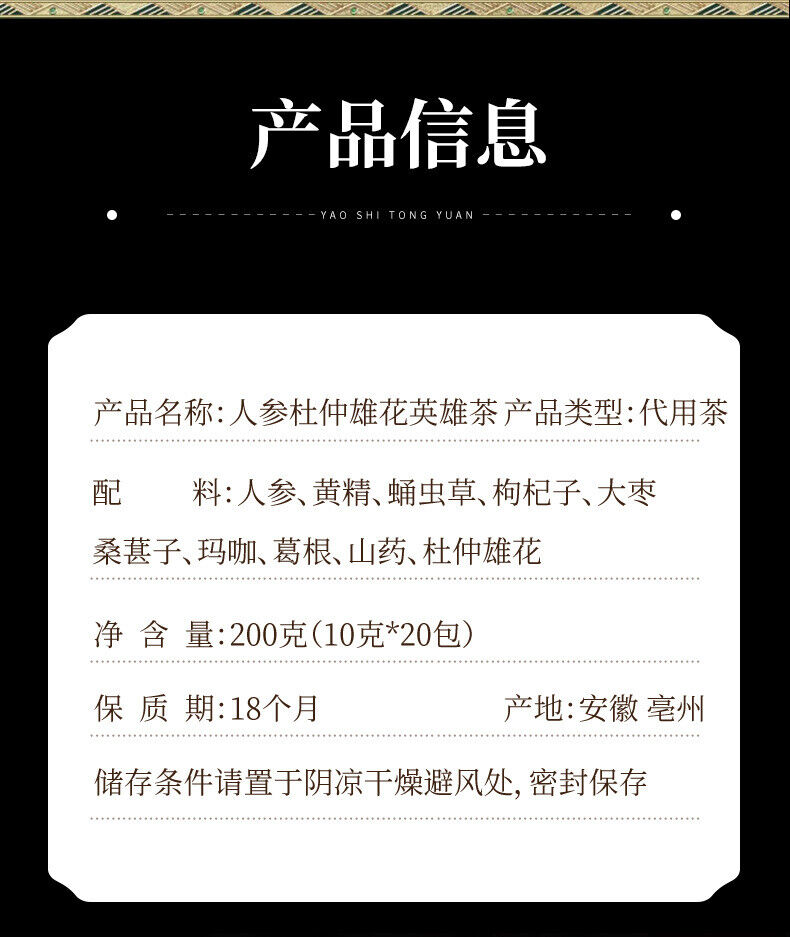 Ginseng Du Zhong Xiong Flower Hero Tea for Men Nine Treasure Herbal Tea