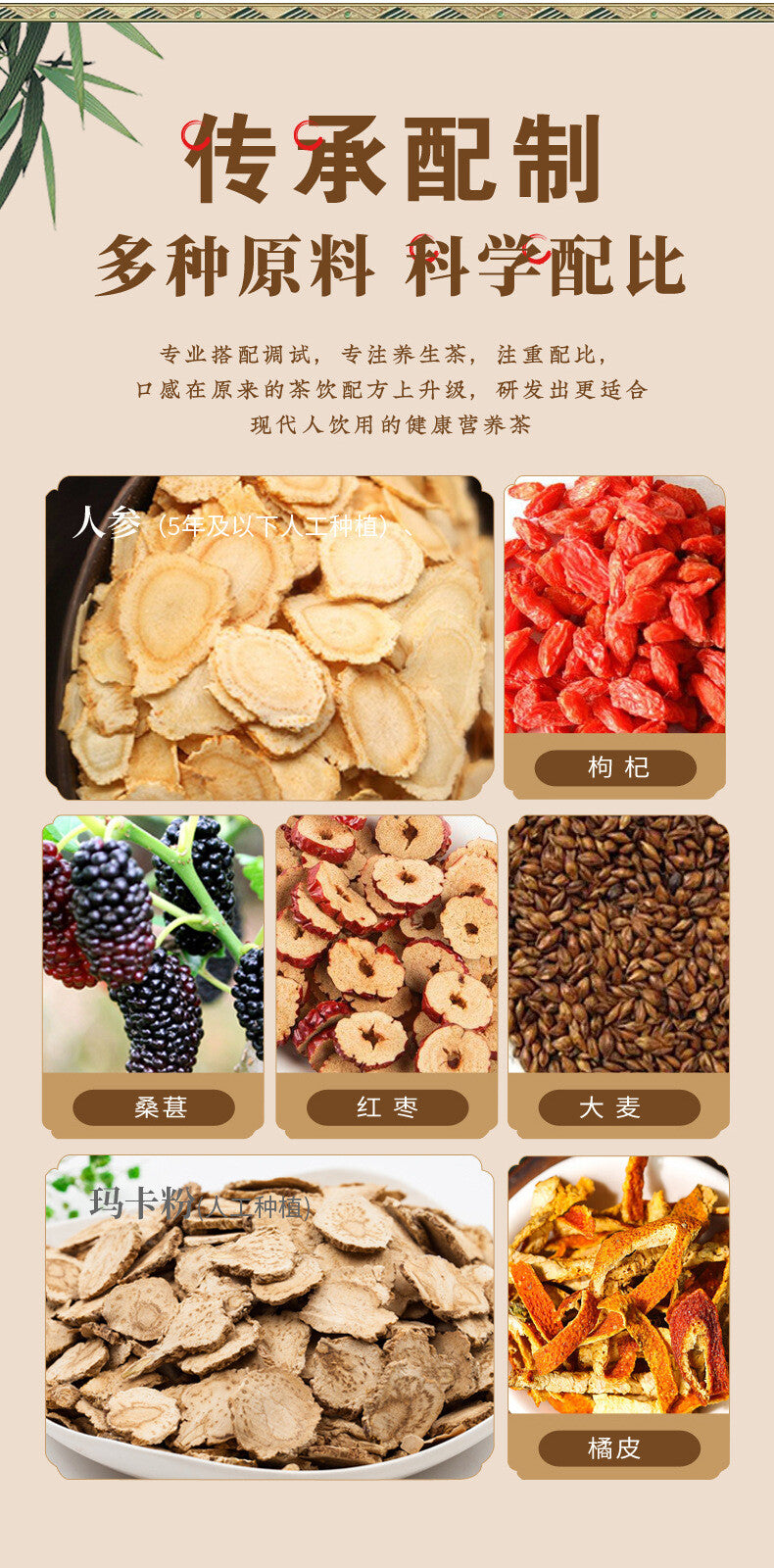 Ginseng Mulberry Black Goji Red Goji Red Date Herbal Tea for Wellness