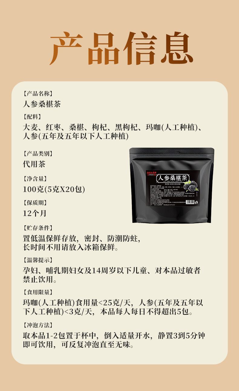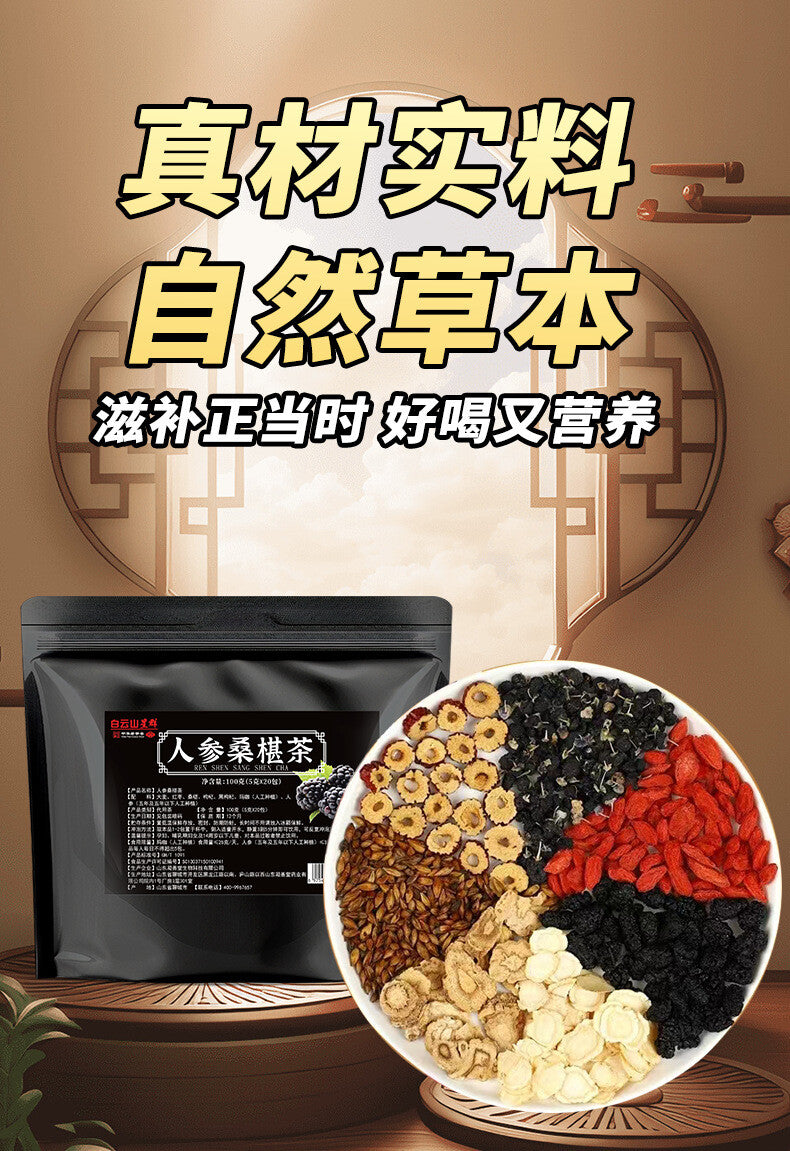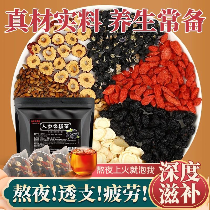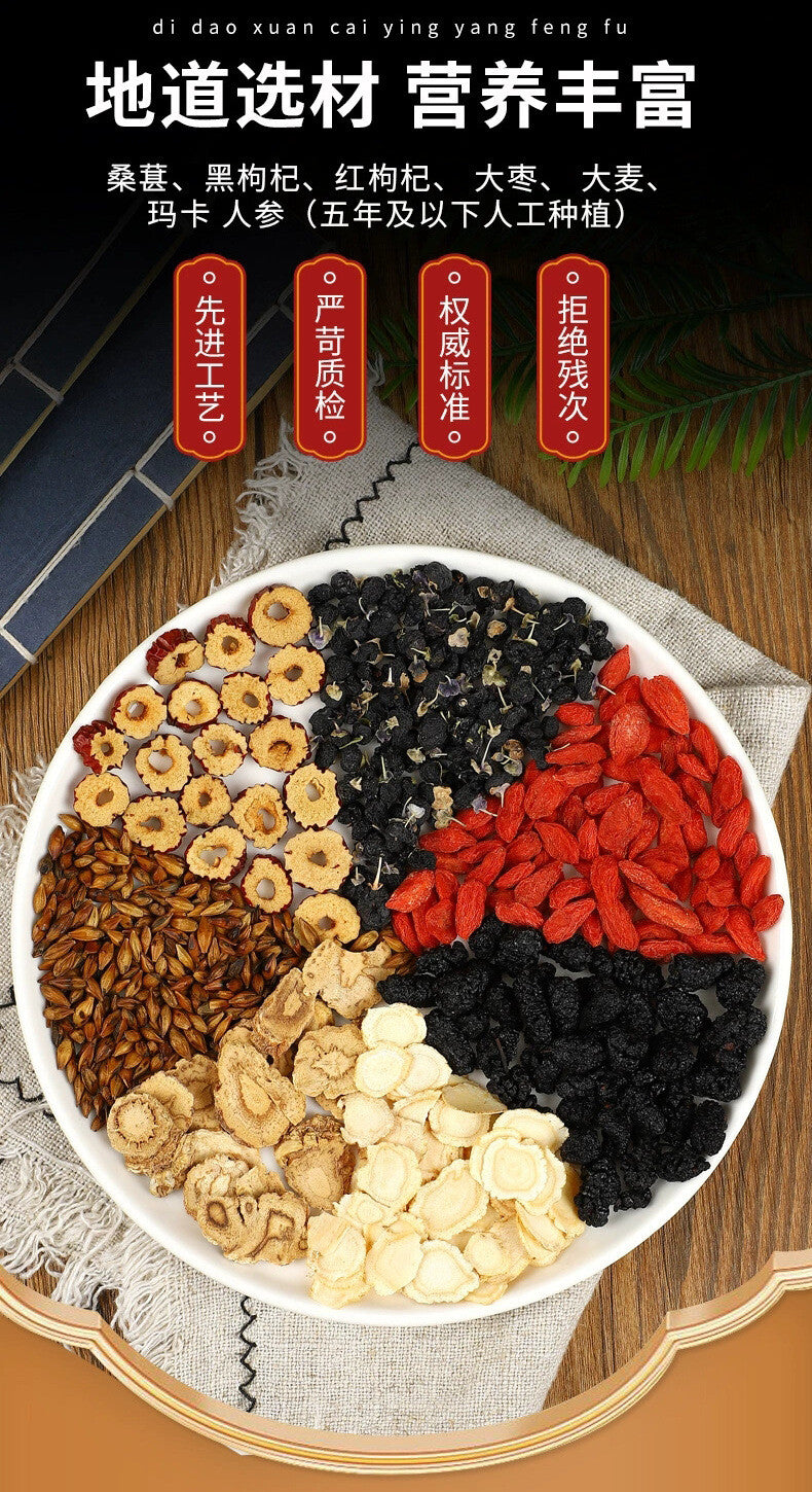 Ginseng Mulberry Herbal Tea Goji Red Date Health Drink for Men Energy Sleep