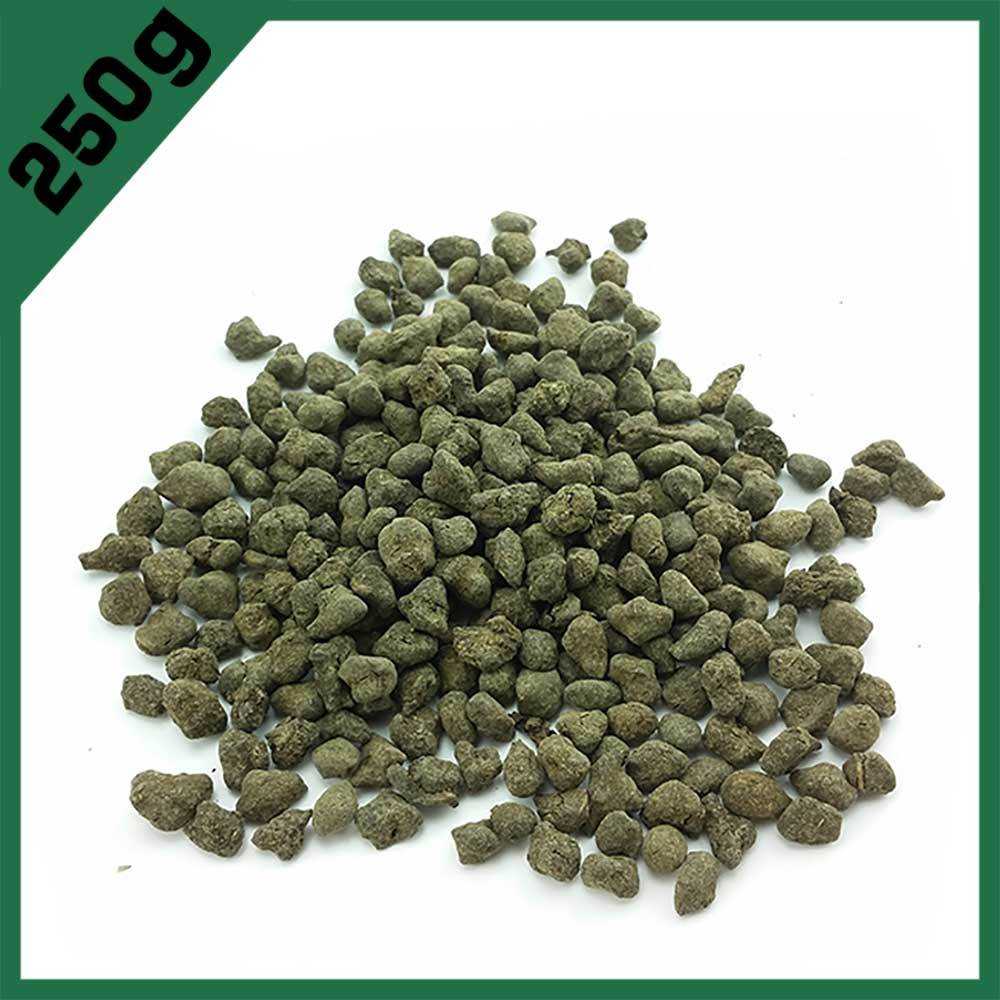 Tea Leaf: In dry form-green lumps-granules. The size of these pellets depends on the quality of feedstock. Ginseng Oolong tea is also called Jade for its similarity to this stone.