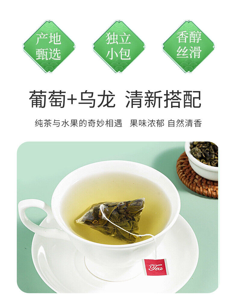 Green Grape Oolong Tea with Raisins Natural Fruit Flavored Tea in Pyramid Bags