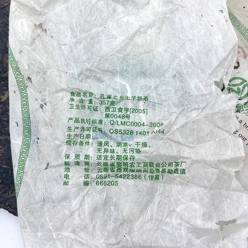 Liming Bajiaoting 2006 Guhua Tea Puer Yunnan Brown Mountain Pu'er Raw Tea 357g