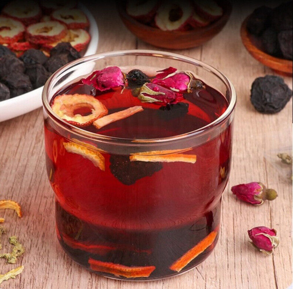 Hawthorn Roselle Mulberry Rose Herbal Tea Natural Blend Antioxidant Floral