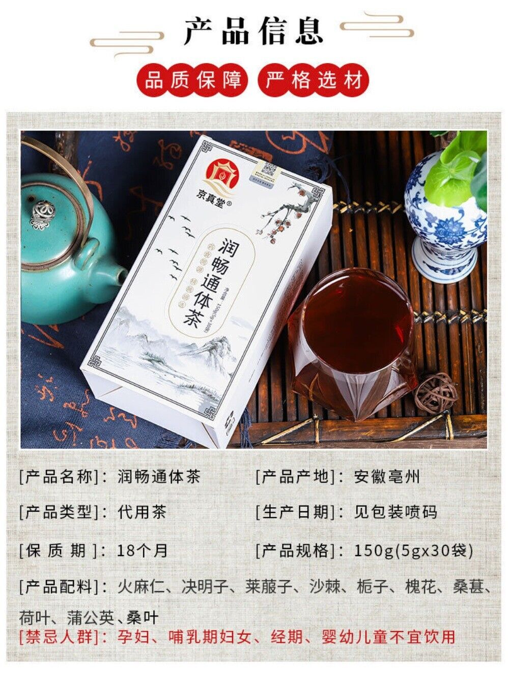 Hemp Seed Cassia Mulberry Leaf Radish Herbal Tea Natural Smoothing Blend