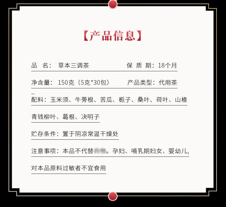 Herbal Three-Tonic Tea with Cassia, Lotus Leaf, Corn Silk & Mulberry Leaf,30 Tea