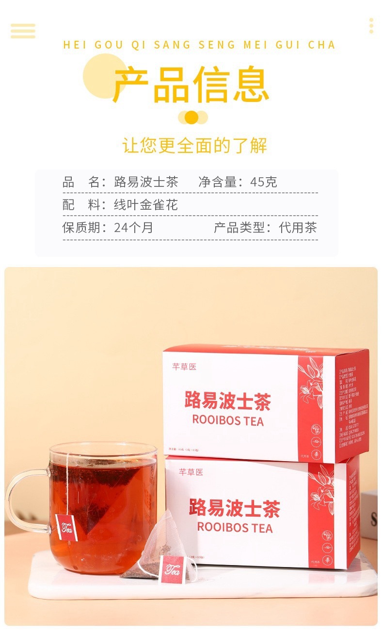 Honeybush Rooibos Tea Premium Flavored Natural Sweet Triangle Tea Bags