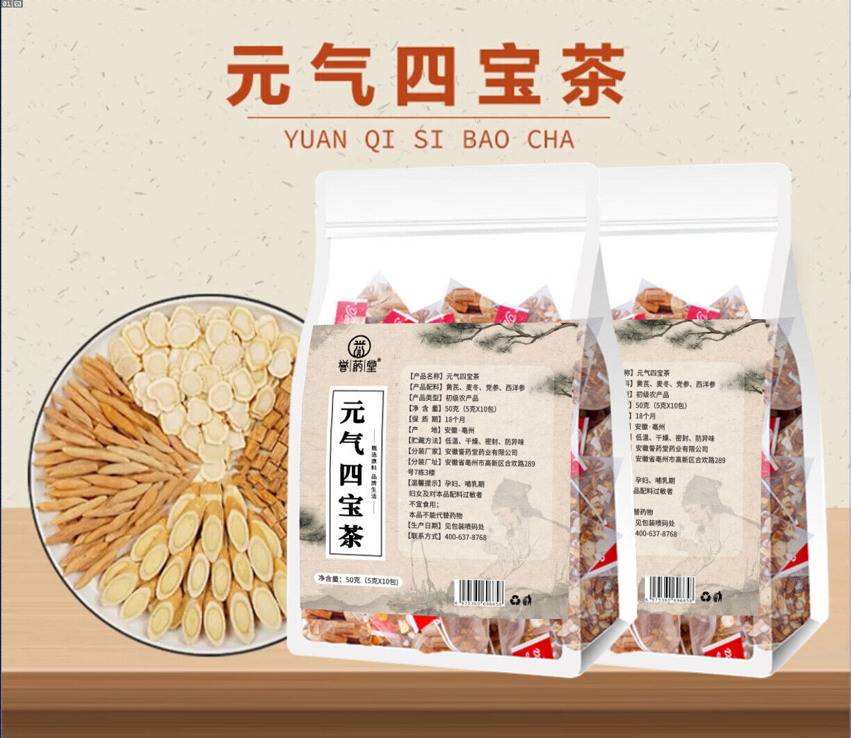 Huangqi Maidong American Ginseng Codonopsis Four Treasures Herbal Tea