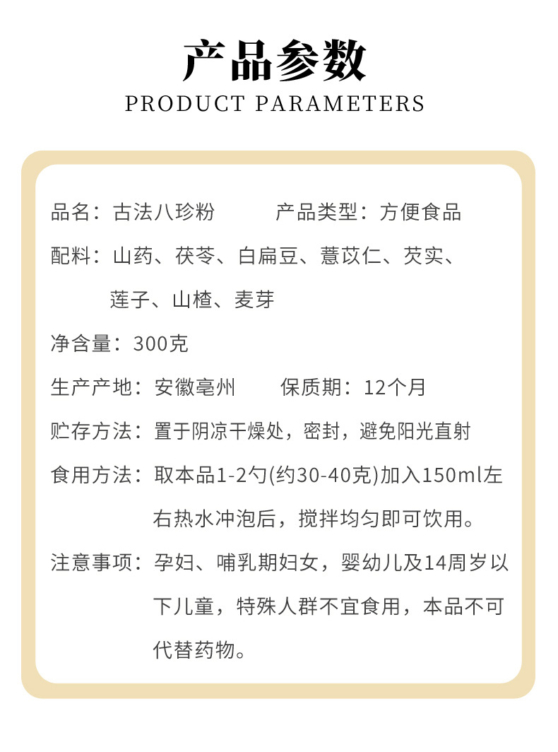 Instant breakfast herbal beverage Bazhen powder yam poria cocos coix seed