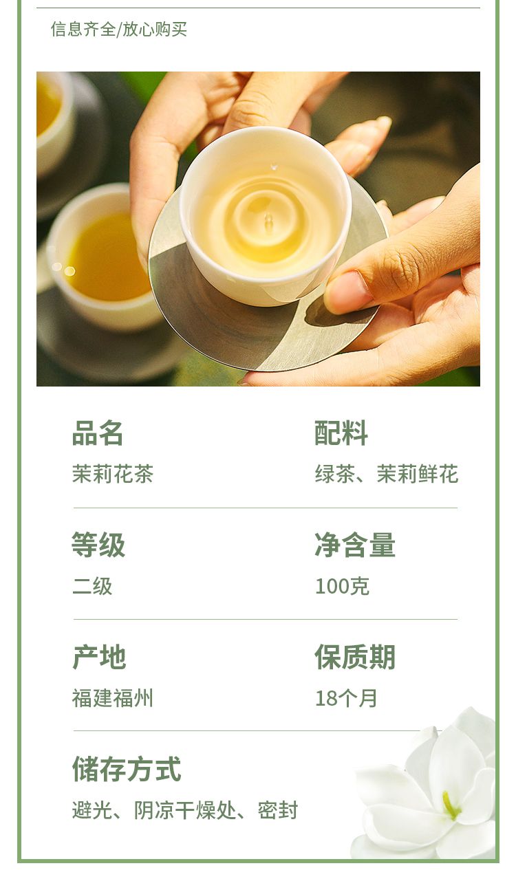 Jasmine Green Tea 100g Seasonal Fresh Strong Flavor Loose Leaf from Fuzhou