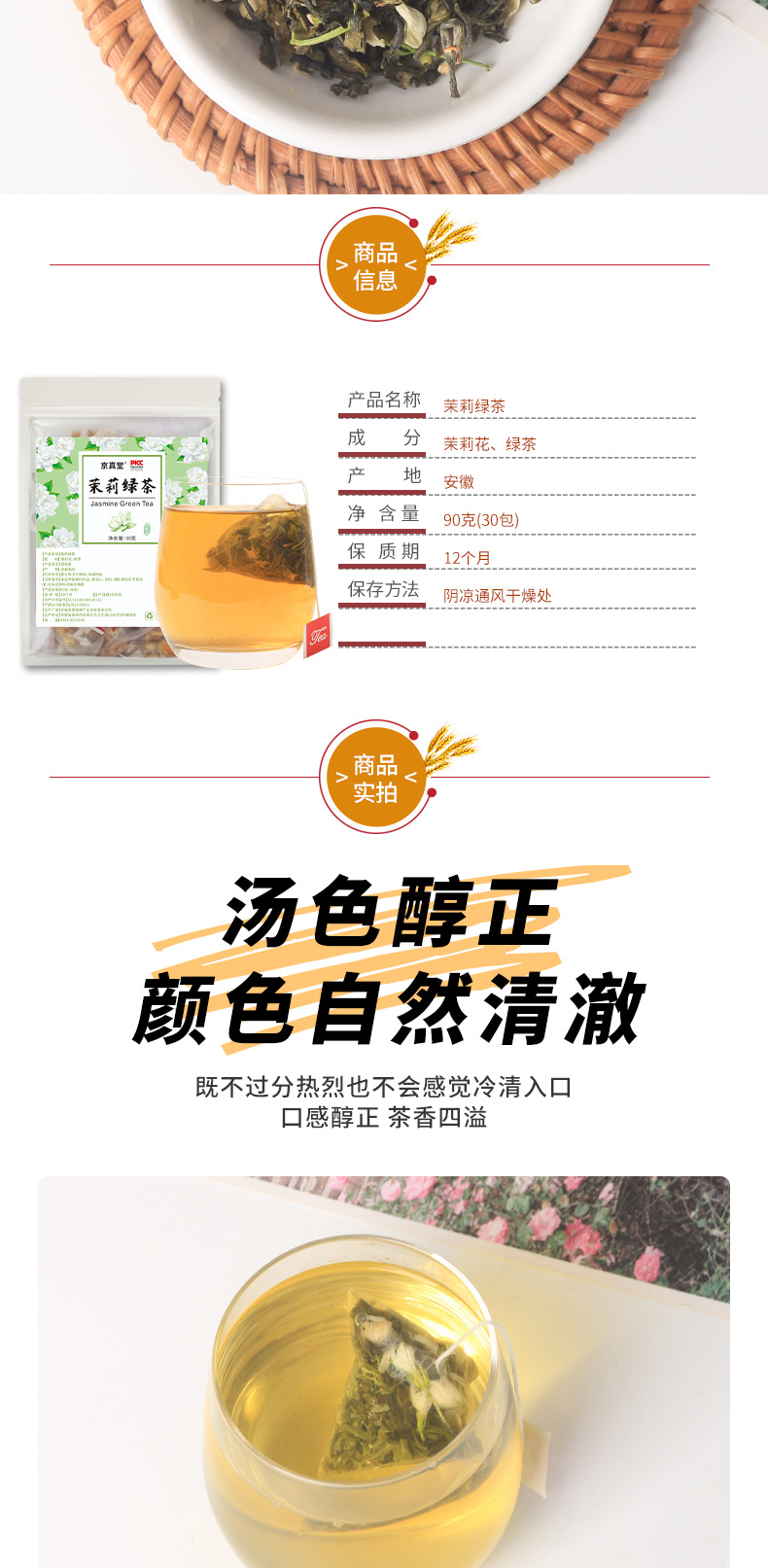 Jasmine Green Tea Herbal Tea Bags for Commercial Use 30 Triangle Bags