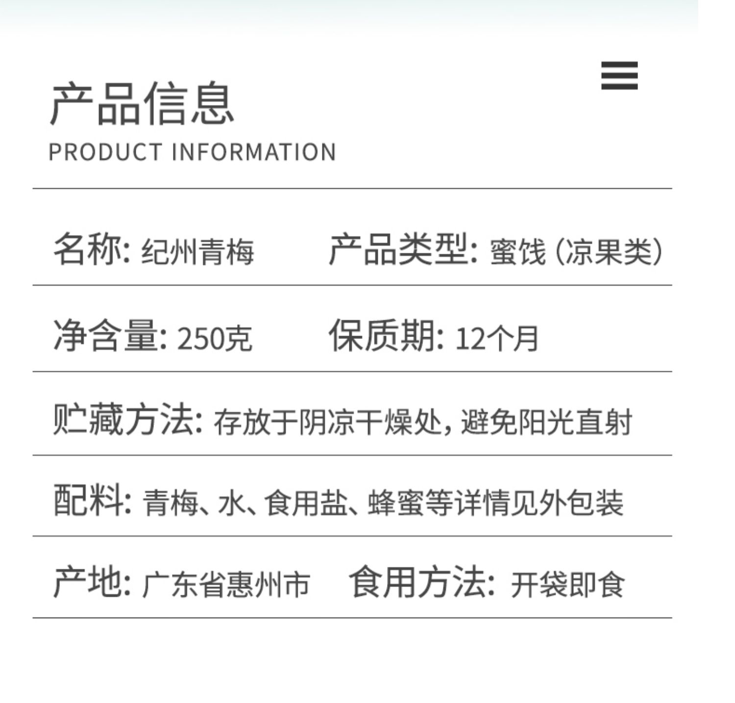 Jizhou Qingmei Green Plum 250g 2 Bags Sweet Sour Crispy Fruit Snack