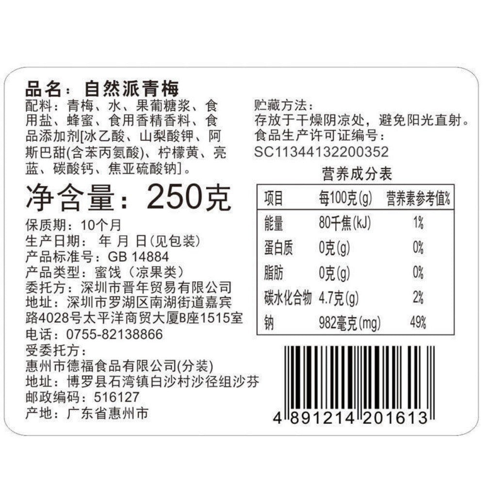 自然派纪州青梅250g*2袋 酸甜青梅果清脆爽口梅子袋装休闲零食蜜饯 Jizhou Qingmei Green Plum