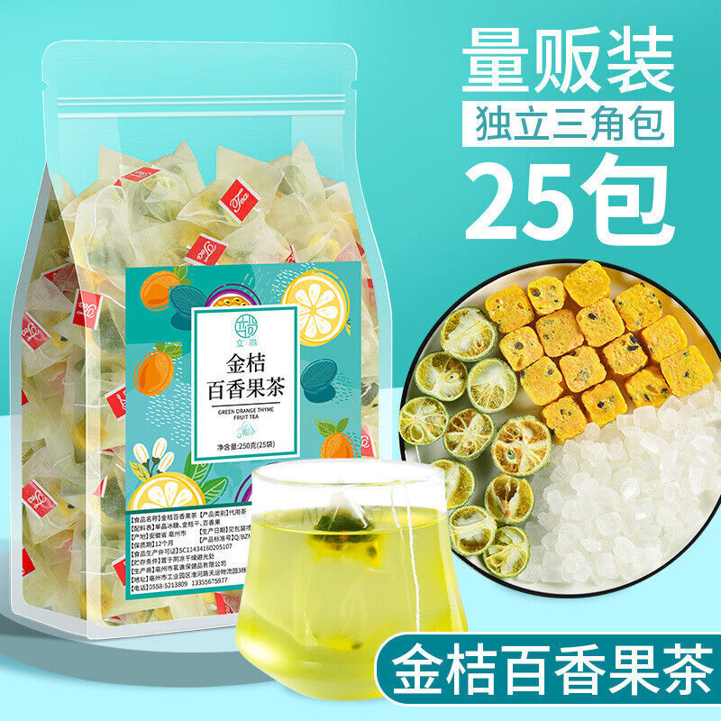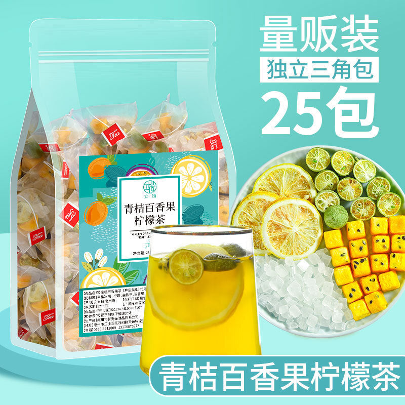 金桔柠檬百香果茶夏季冷泡茶水果茶冻干青桔25包 Kumquat Lemon Passion Fruit Cold Brewing Tea Fruit Tea