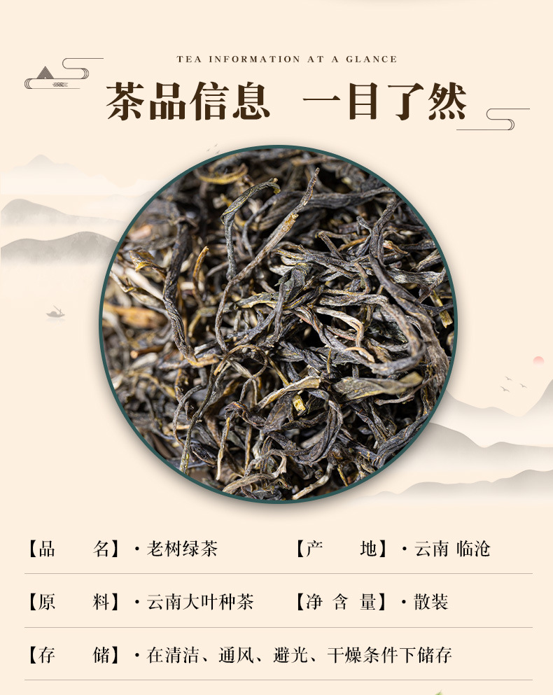 Lincang Old Tree Yunnan Green Tea Large Leaf Fresh Natural Premium Loose