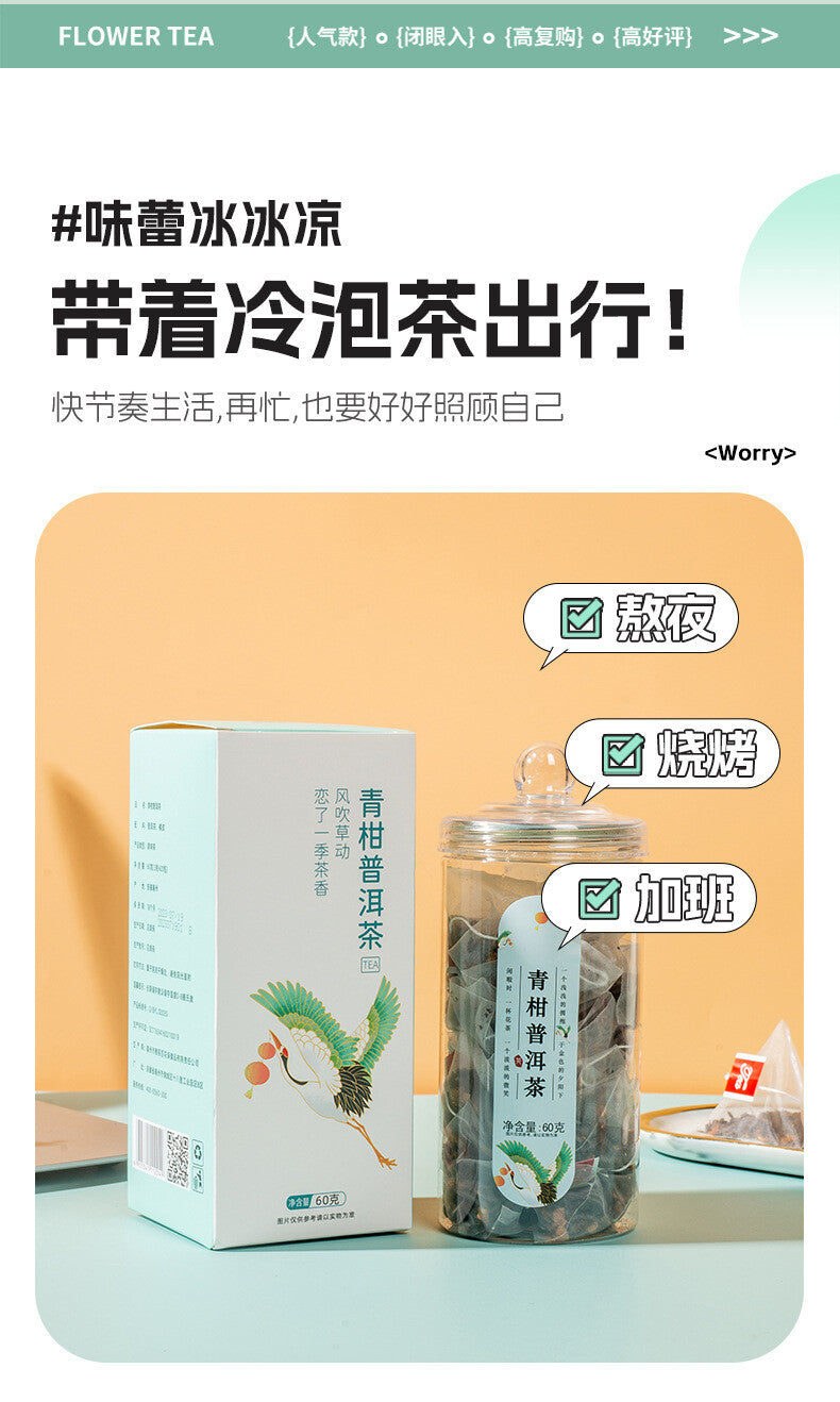 Mini Tangerine Pu-erh Tea Pyramid Bags Cold Brew Flavor Tea Box Fruit Tea
