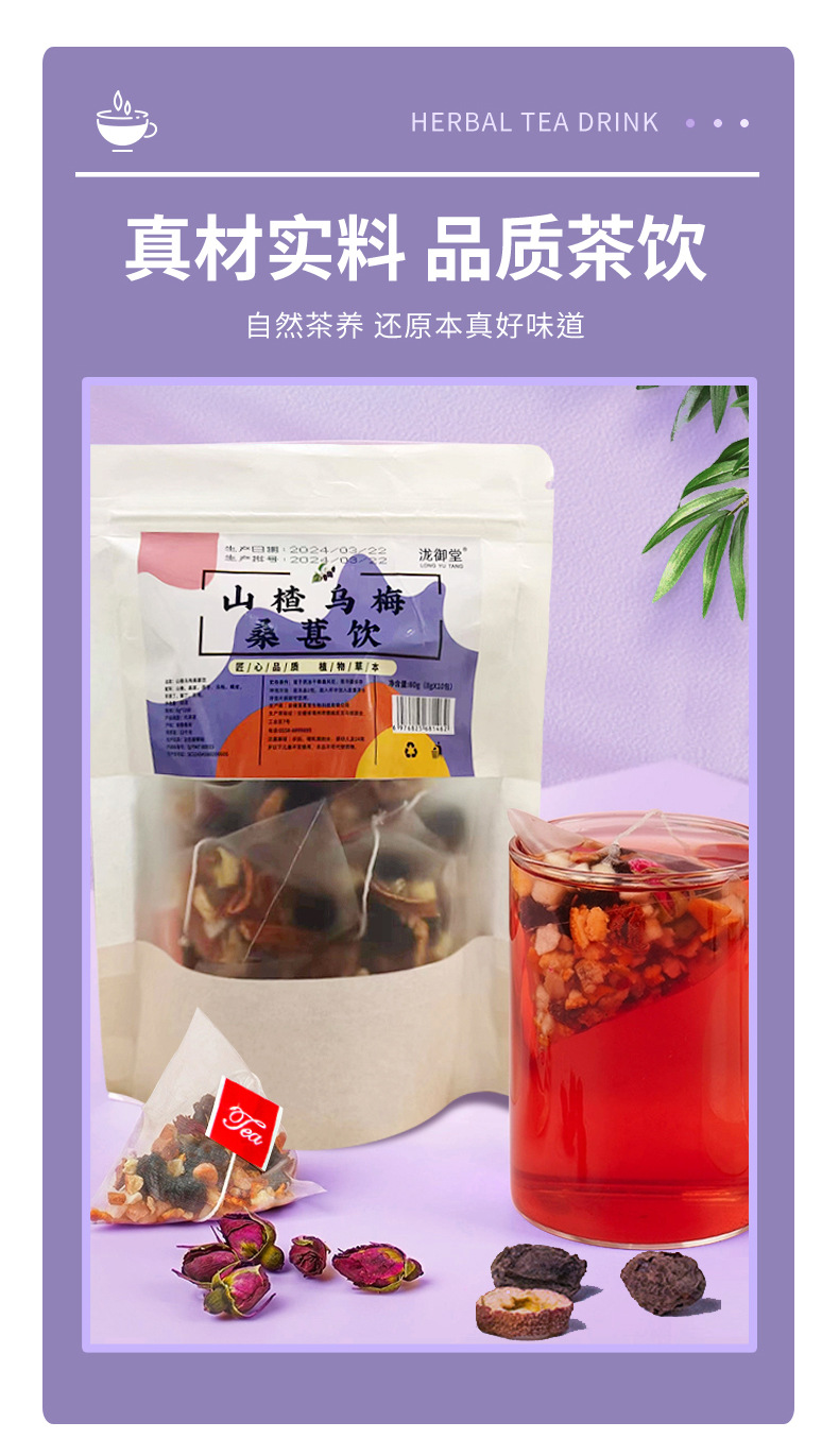 Mulberry, Hawthorn, and Ume Tea in Triangular Bags, Live Stream Wholesale