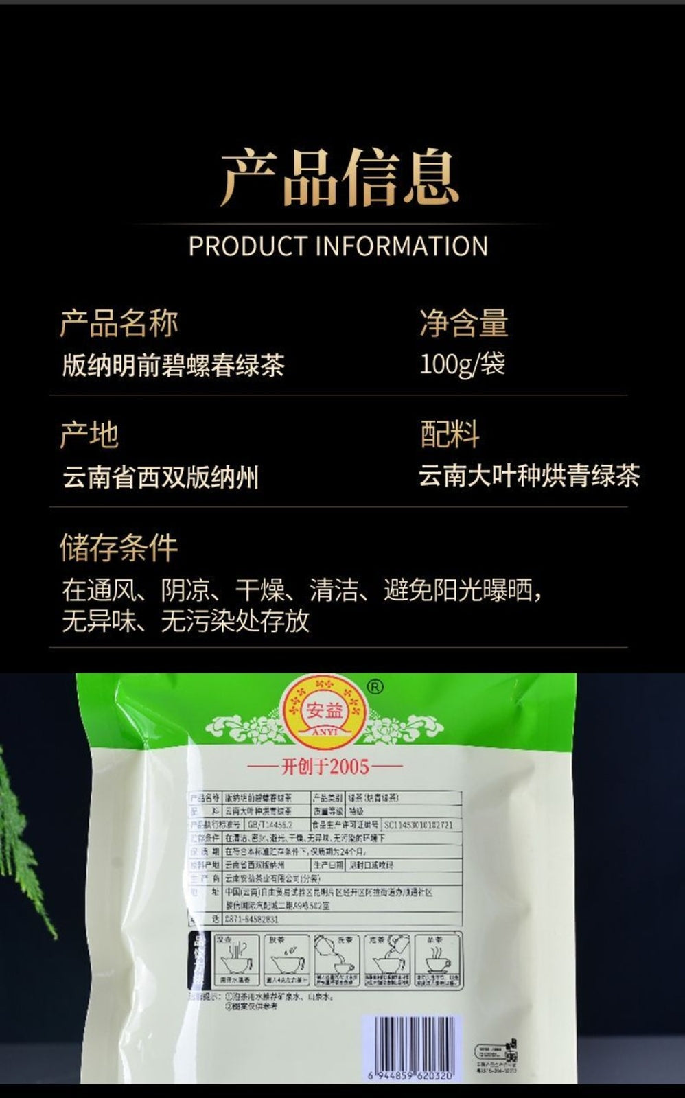Nap Pre Qingming Biluochun Green Tea 100g Yunnan Fresh Aroma Loose Leaf