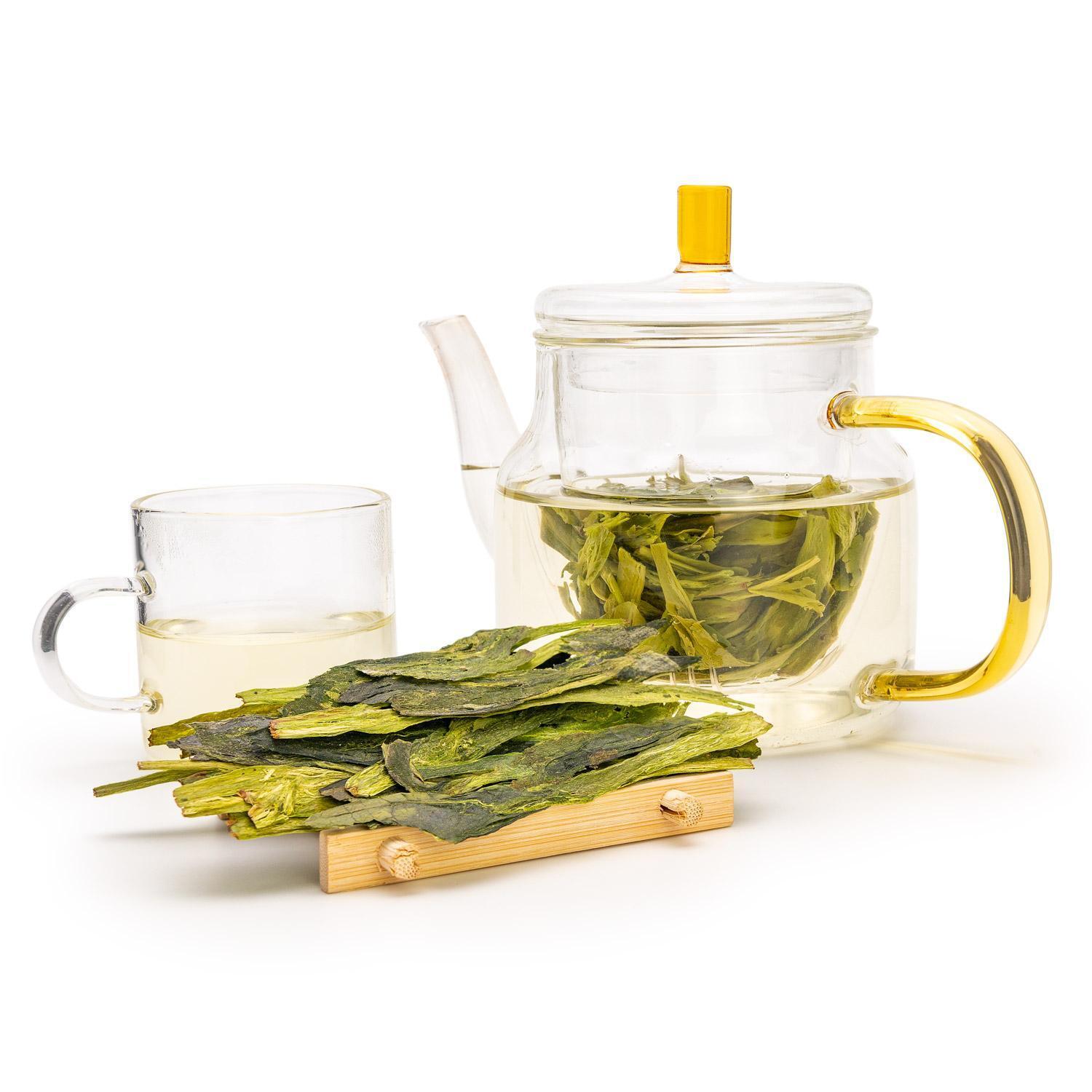 Its leaf measures up to 60 mm; it is the largest-sized leaf tea among the famous green teas. But surprisingly its size does not affect its delicate orchid fragrance with a mellow taste that lasts up to four brewing. So get a glass or a bigger teapot to make your tea. The water temperature is controlled at about 90℃ (194℉).