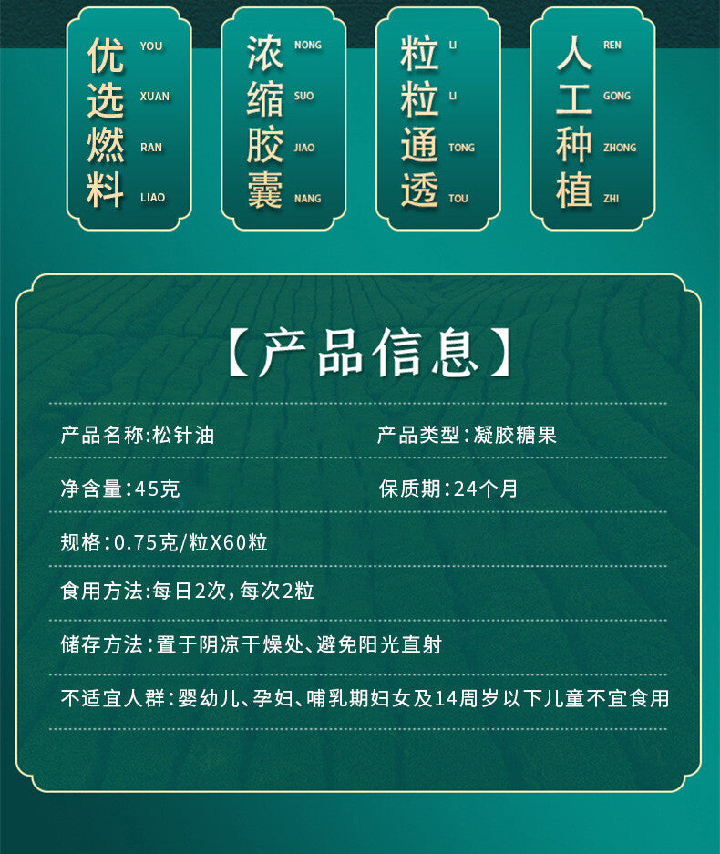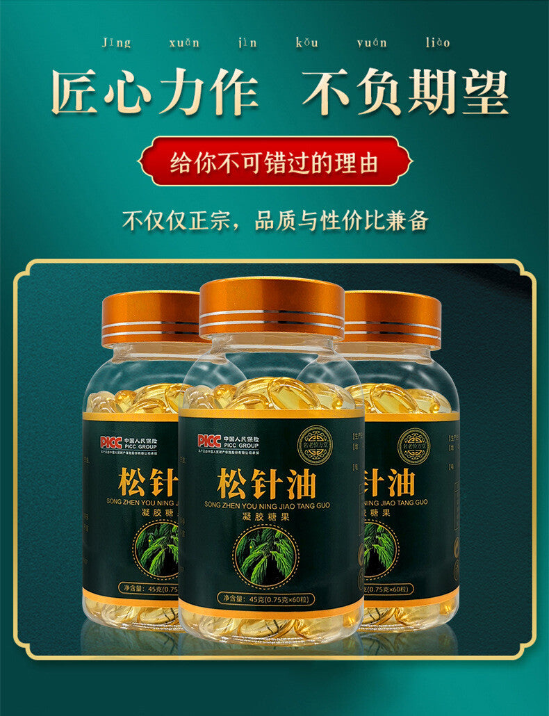 Oil Gummy Candy & Weng Guo Fruit Oil Capsules 60 Count Edible Pine Needle