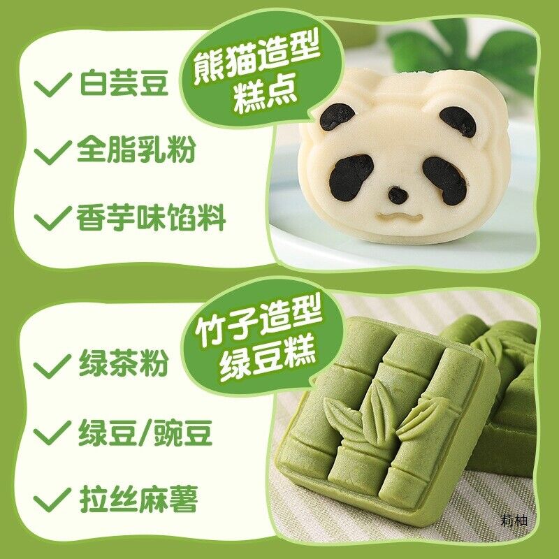 Panda Green Bean Cake Traditional Pastry Healthy Snack for Office Breakfast