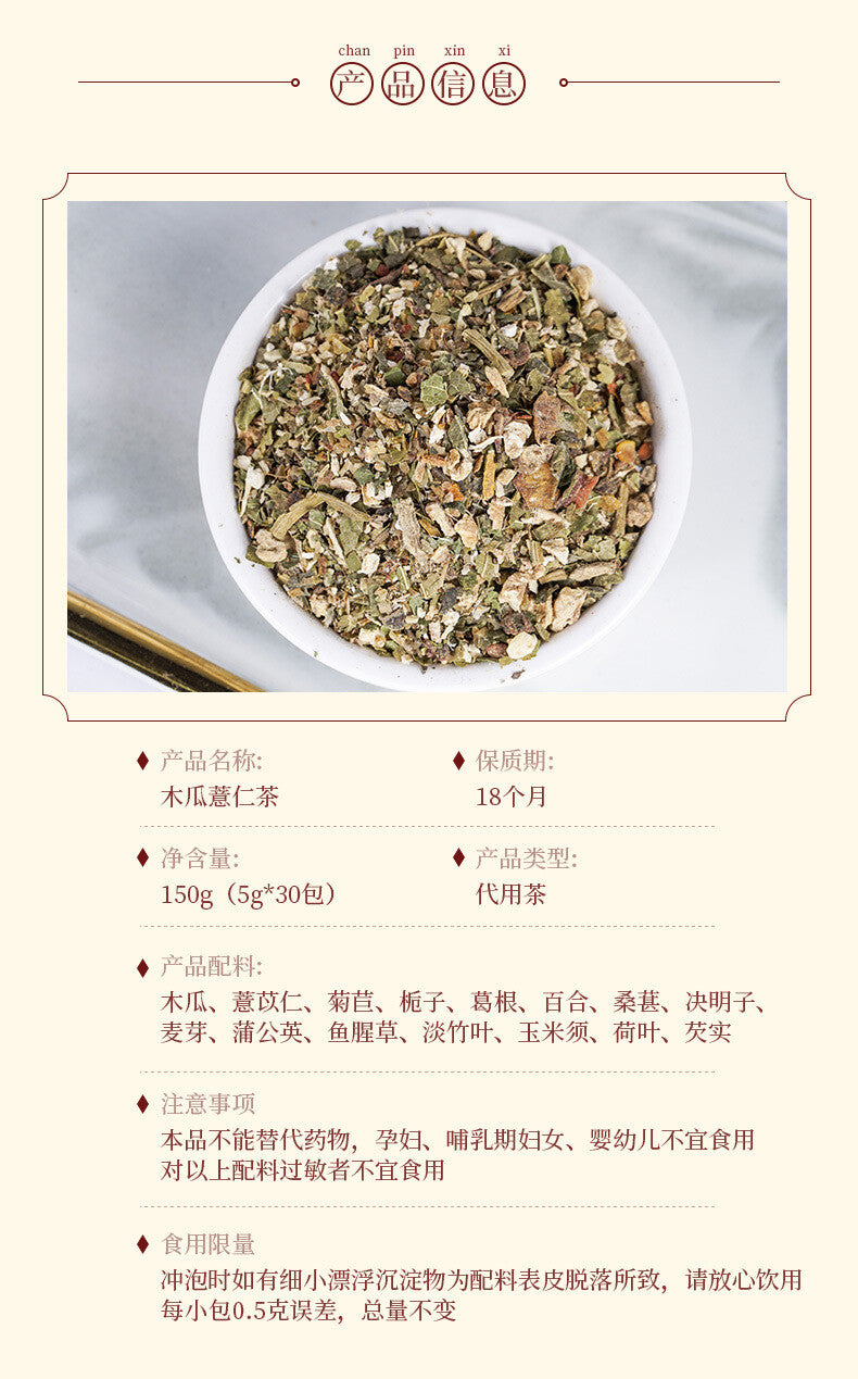 Papaya Job's Tears Tea with Chrysanthemum,Gardenia,and Pueraria for Acid Balance