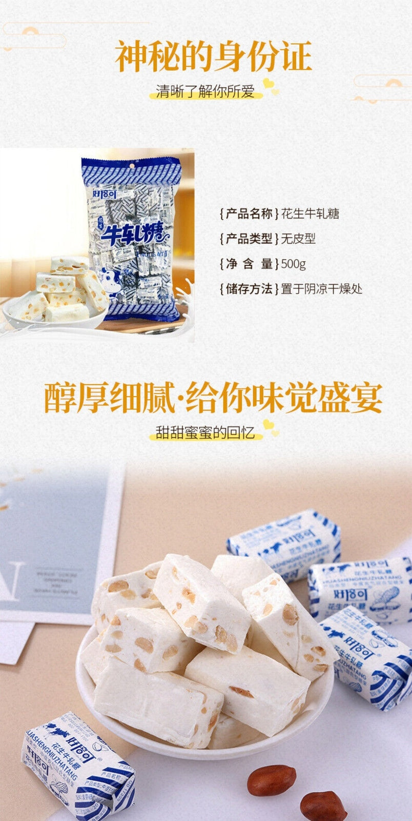 Peanut Nougat 500g Soft Milk Candy Traditional Sweet Snack Treat