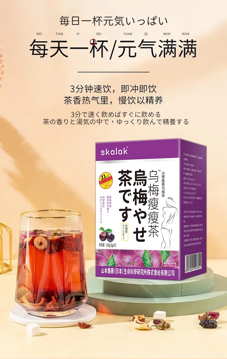 Plum Slimming Tea - Hawthorn, Mulberry, Plum, 5g x 21 Bags, Herbal Wellness