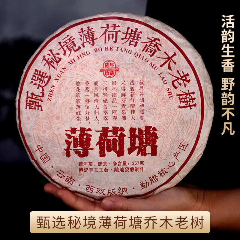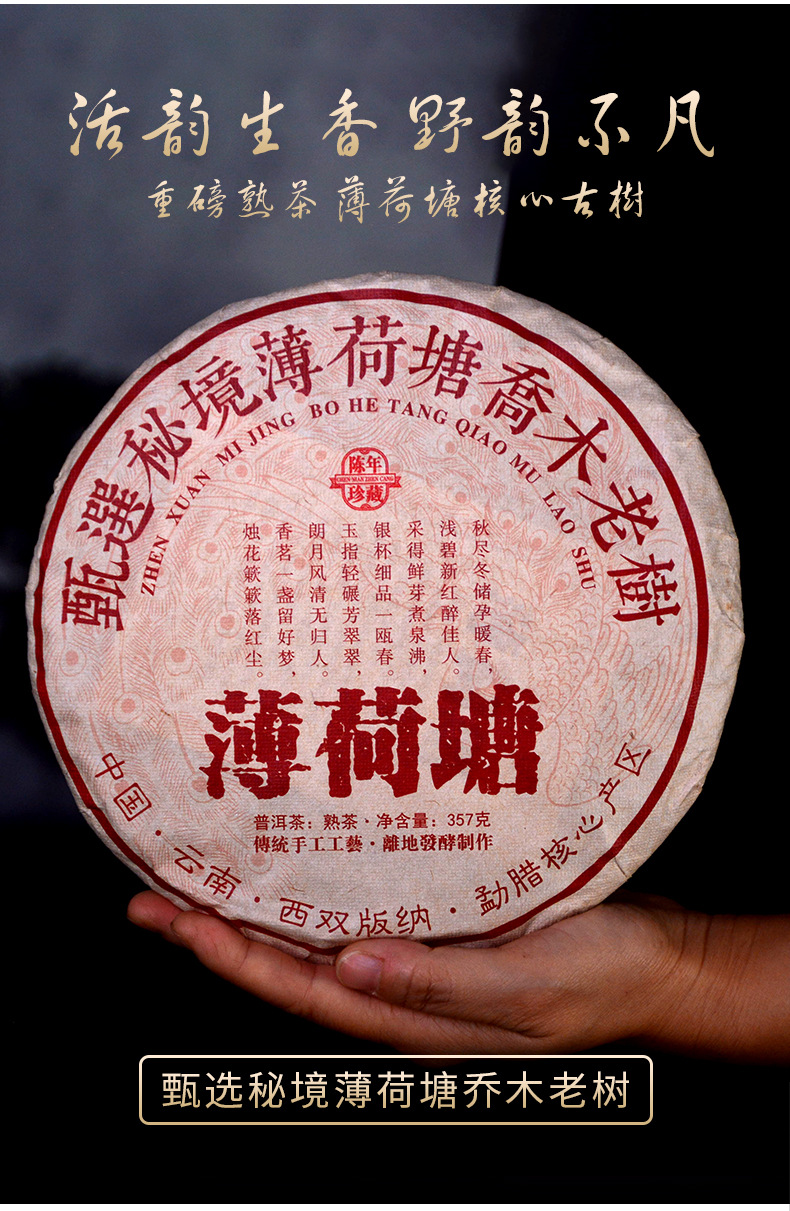 Premium Yunnan Menghai Aged Pu-erh Ripe Tea Cake357gMint Tree Arbor Old Tree Tea