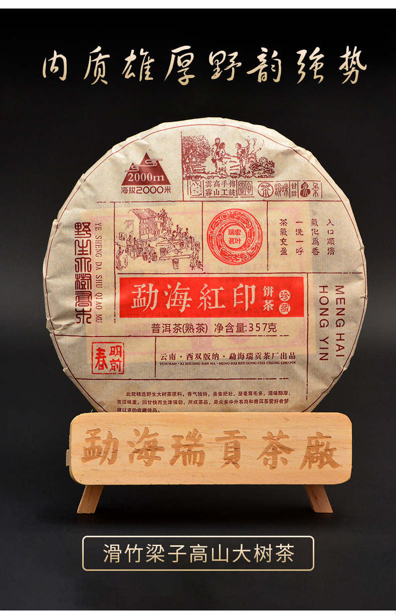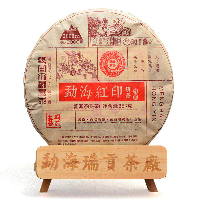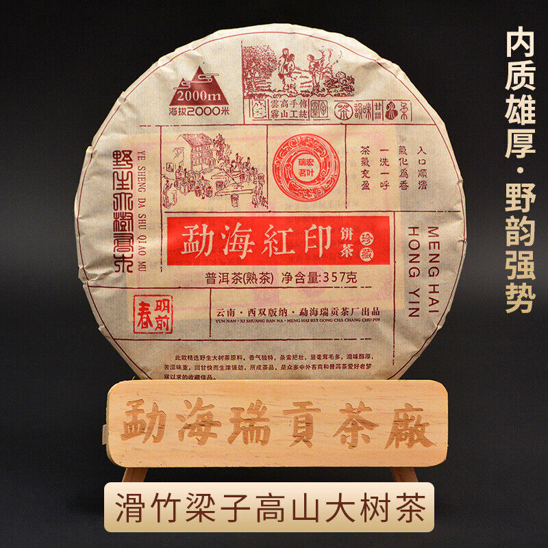 Premium Yunnan Menghai Red Mark Pu-erh Ripe Tea Cake 357g Aged Natural Healthy