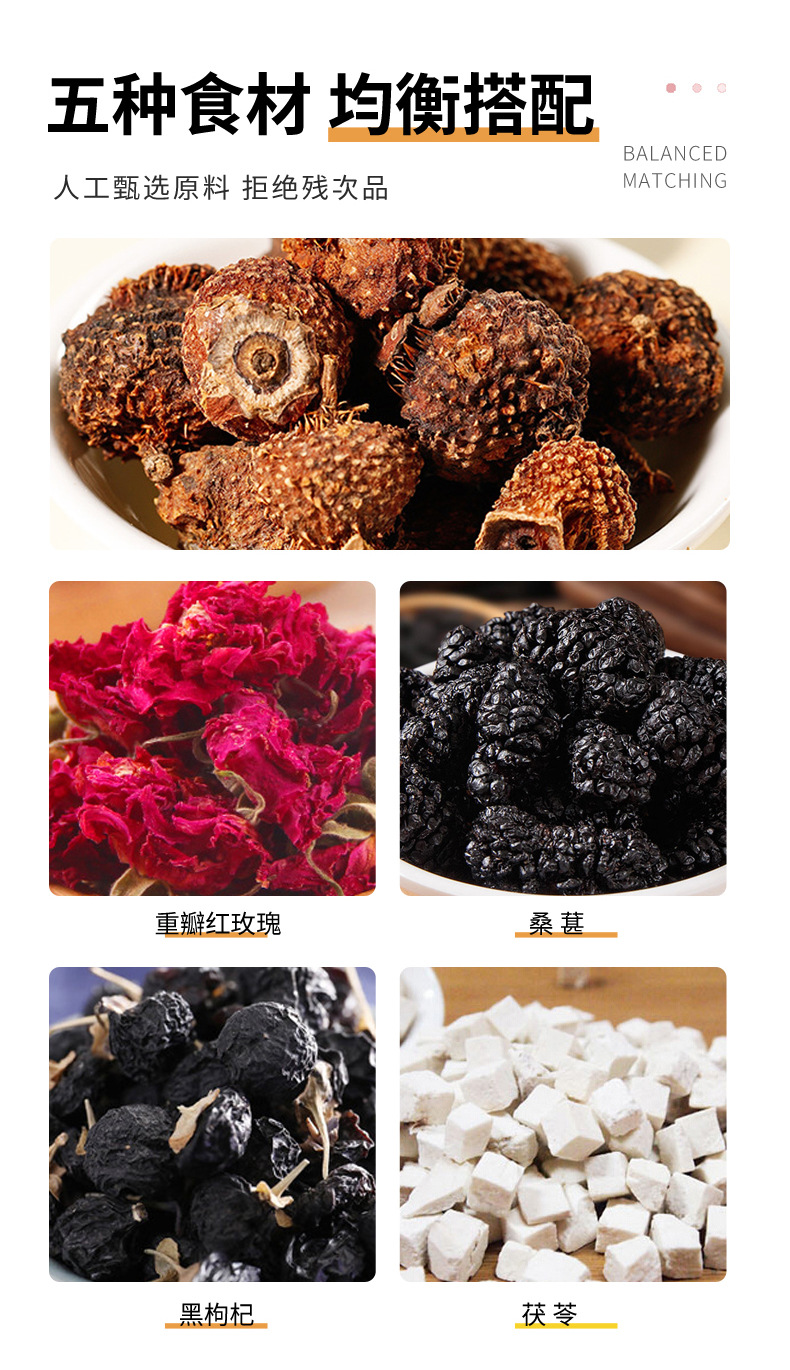 Prickly Pear Mulberry Rose Poria Black Goji Tea Combo Triangular Bags