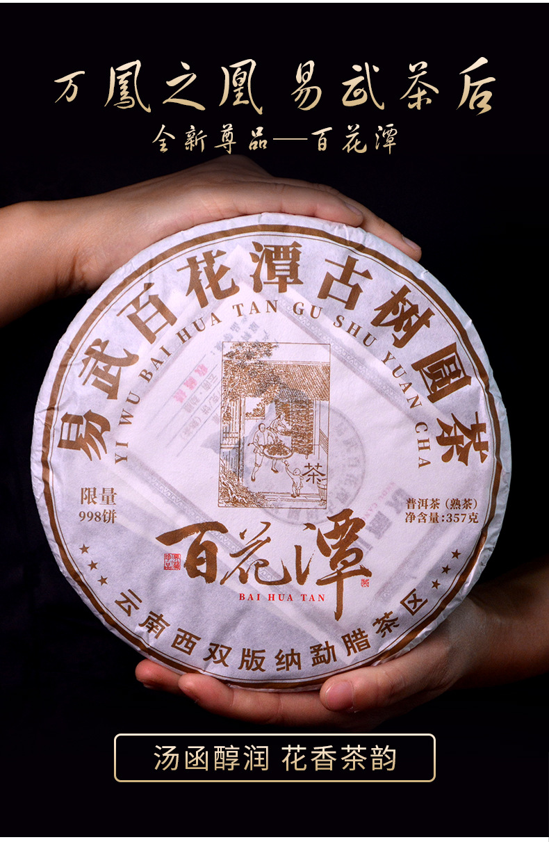 Pu-erh Ripe Tea 357g Baihua Tan Ancient Tree Cake Yunnan Seven Cakes Tea