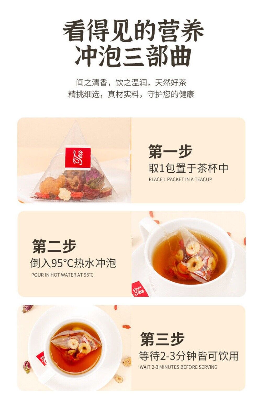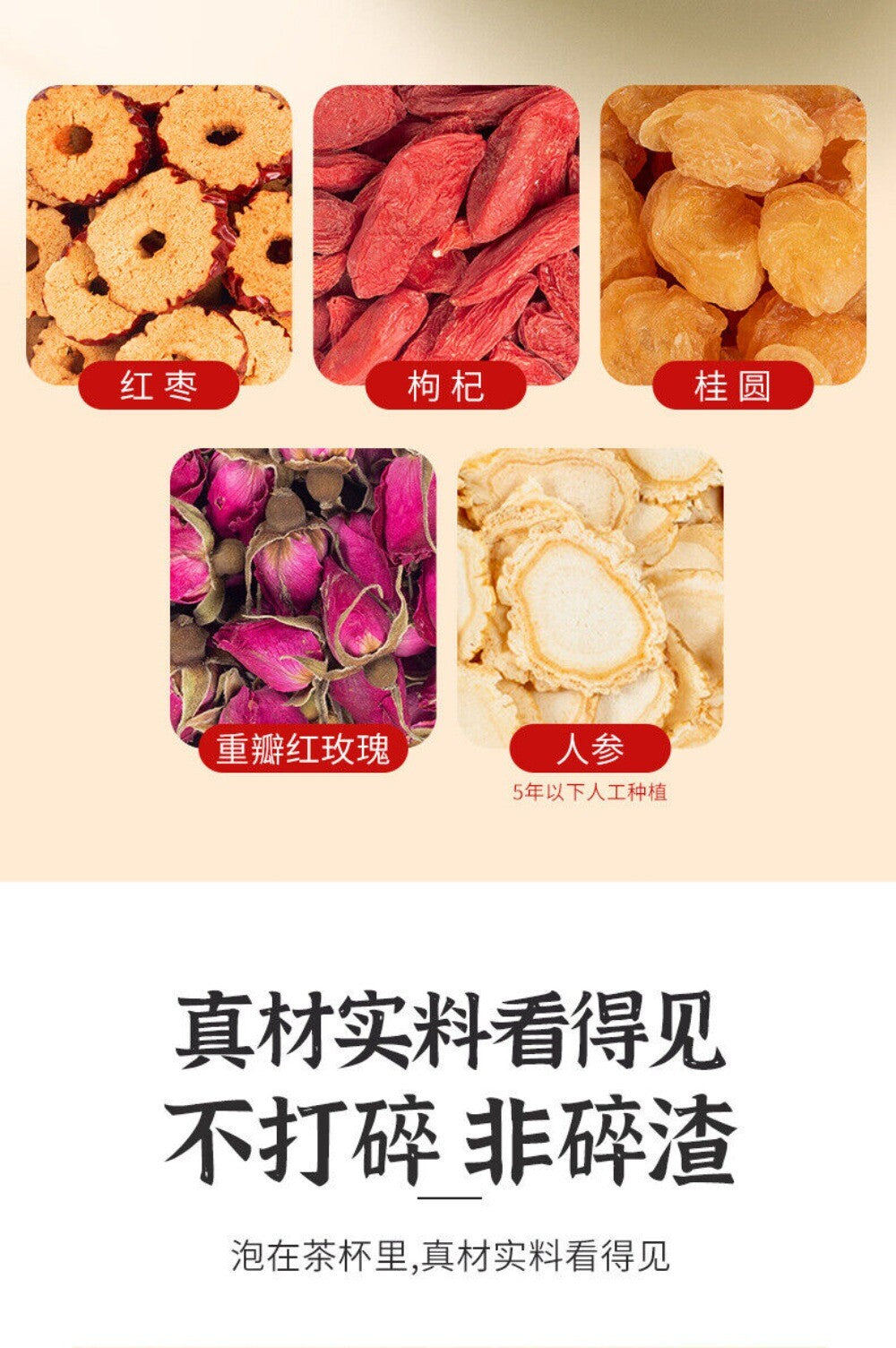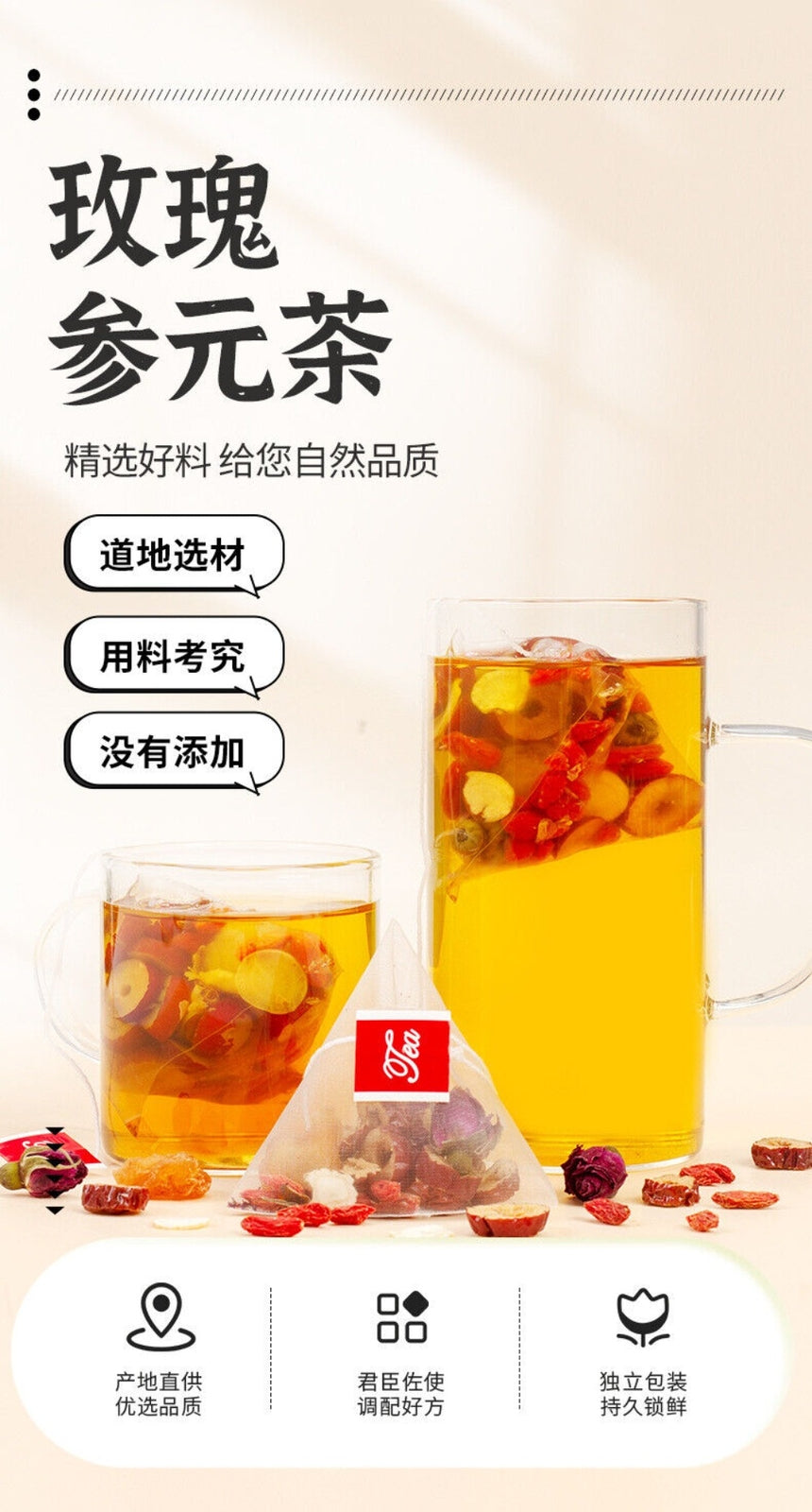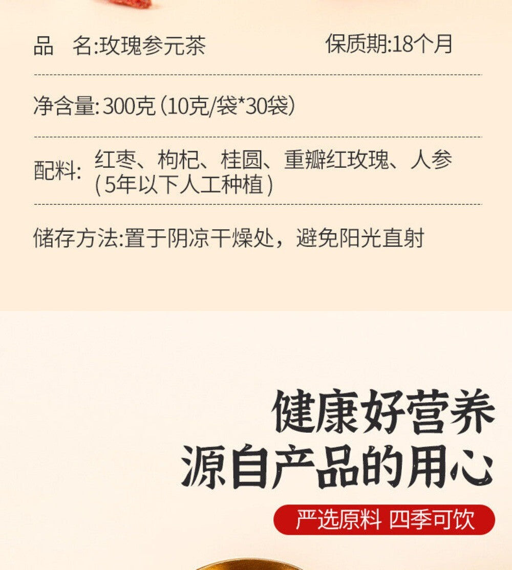 Rose Ginseng Herbal Tea 30 Bags Red Dates Goji Longan Health Support Blend