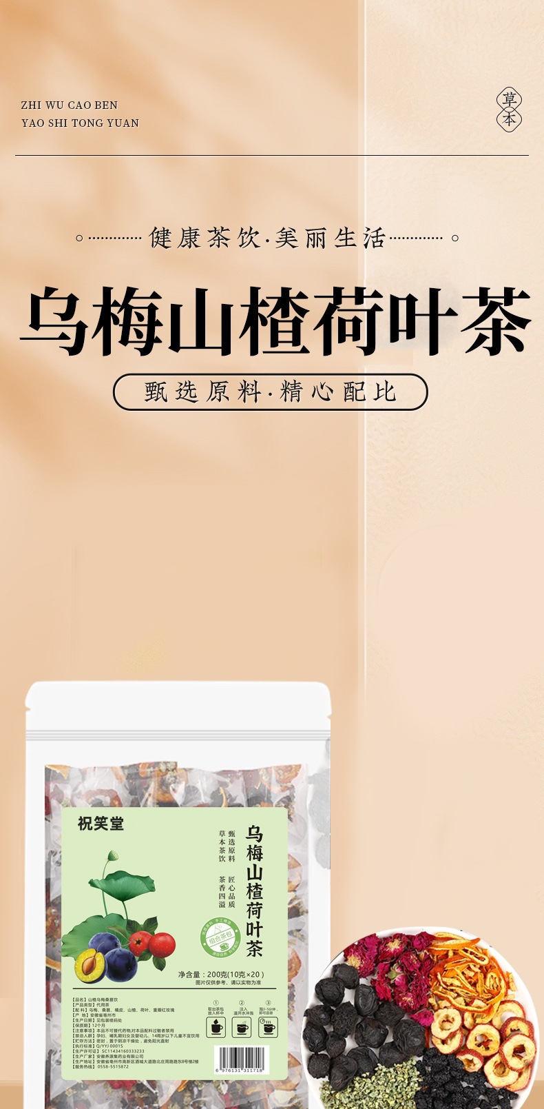 Rose & Orange Peel, Goddess Tea Bags Umei Hawthorn Lotus Leaf Tea