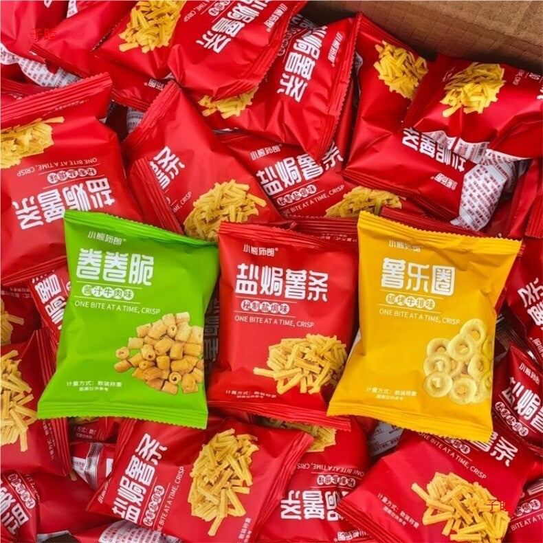 Salt baked French fries,sweet potato circle, charcoal grilled steak, rice cube