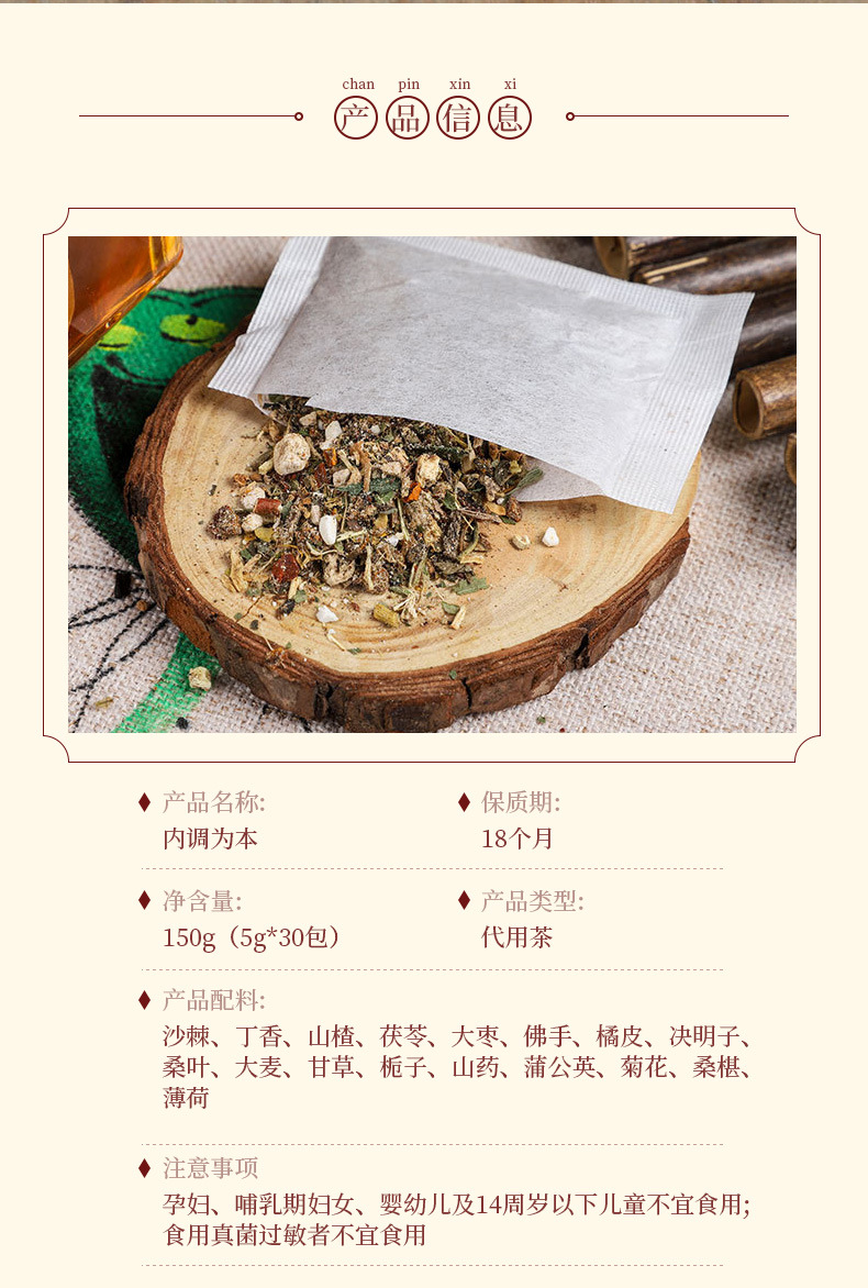 Sea Buckthorn Tea Bags with Clove Barley Poria Hawthorn Orange Chrysanthemum
