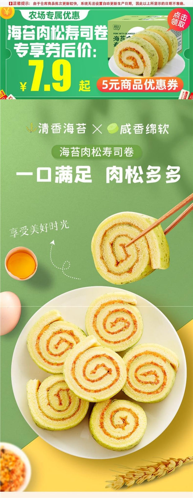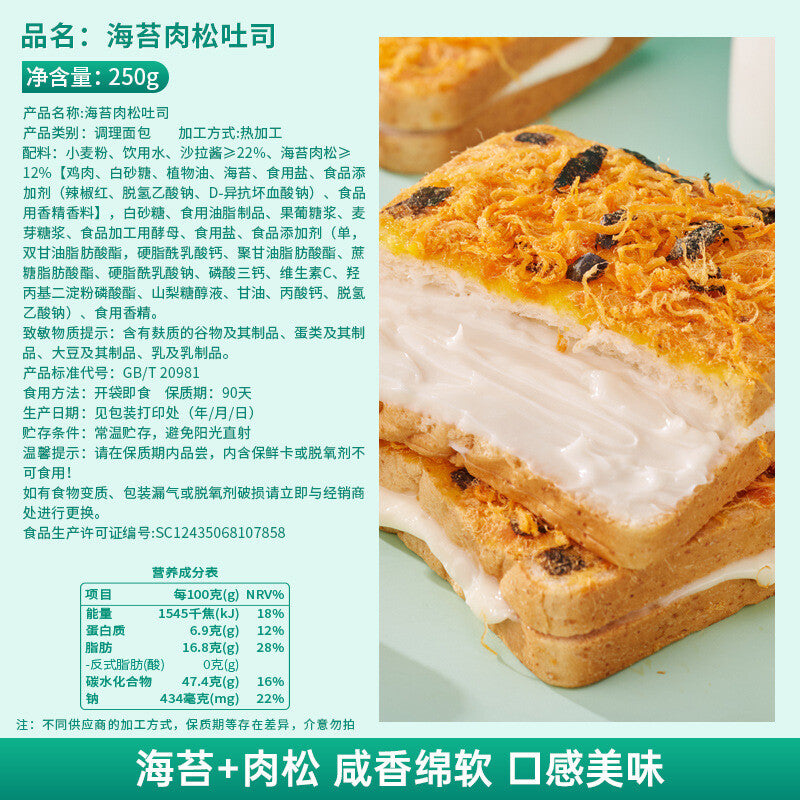 Seaweed Meat Floss Toast Sandwich Bread Snack Healthy Meal Replacement Bulk Box
