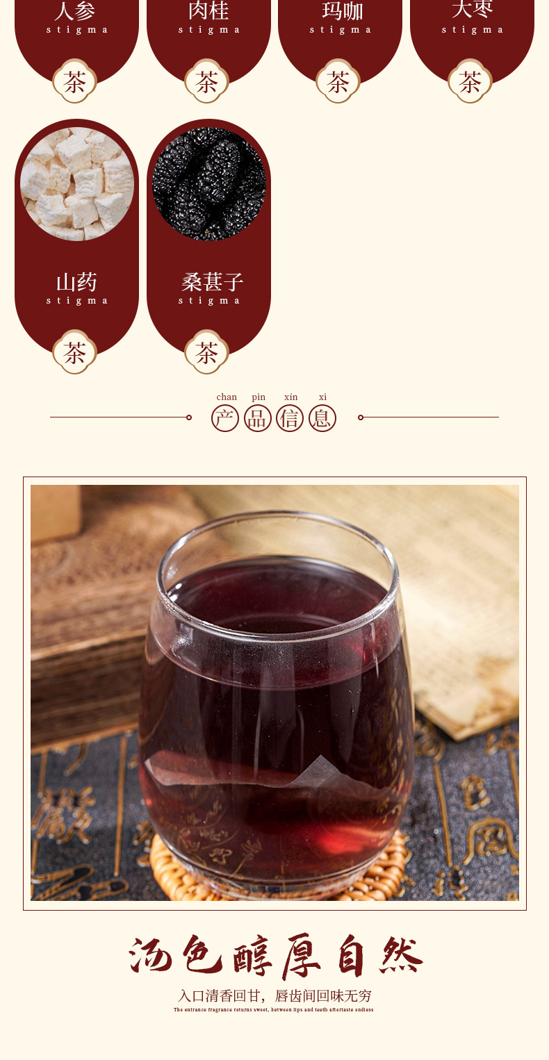 Shan Zhu Yu Ginseng Mulberry Pueraria Raspberry Herbal Tea Health Blend