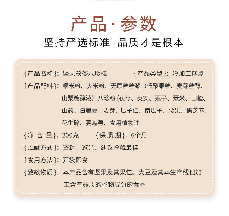 Sugar free healthy breakfast pastry, nuts, Poria cocos, and Eight Treasures cake