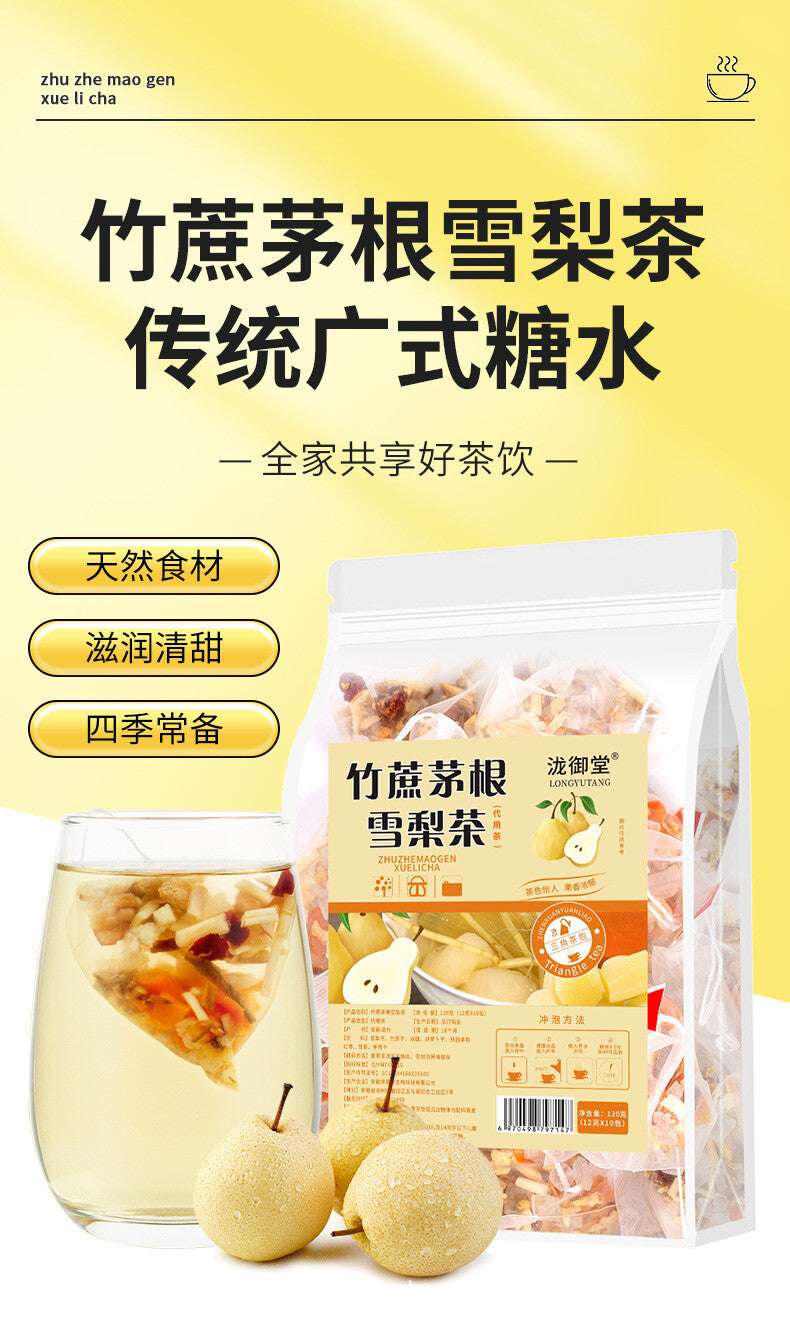 Sugarcane Reed Root Pear Tea Triangle Bags Sweet Throat Soothing Fruit Blend