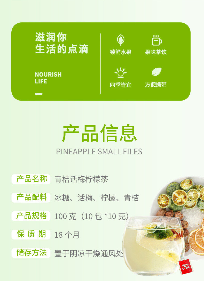 Summer Cold Brew Green Plum Lemon Tea with Freeze Dried Fruits Refreshing Blend