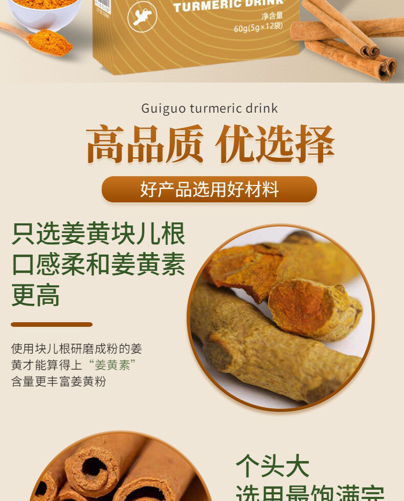 Turmeric Powder Cinnamon Drink Golden Milk 5g*12 bags Guiguo Turmeric Drink