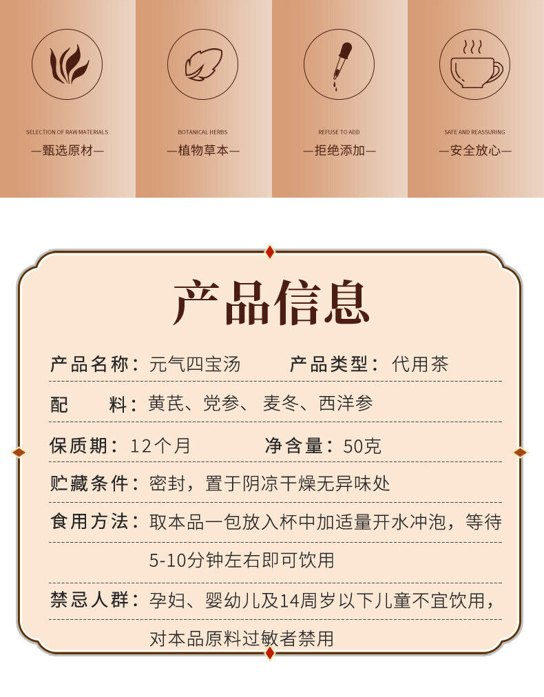 Vital Four Herbs Tea Triangular Bags Astragalus Ginseng Ophiopogon Codonopsis