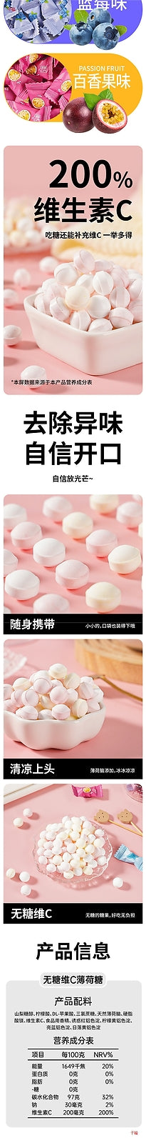 Vitamin C mint candy, fruit flavored hard candy, casual snack candy