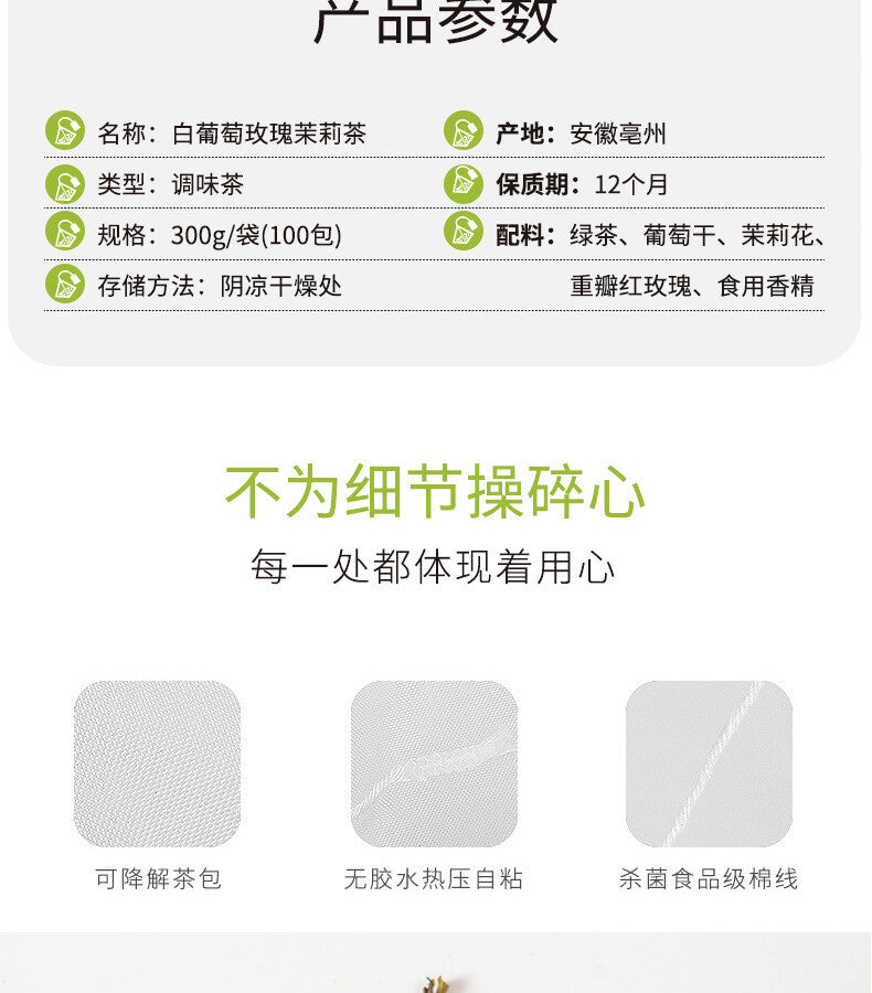 White Grape Rose Jasmine Tea – Fragrant Green Tea Cold Brew Bags